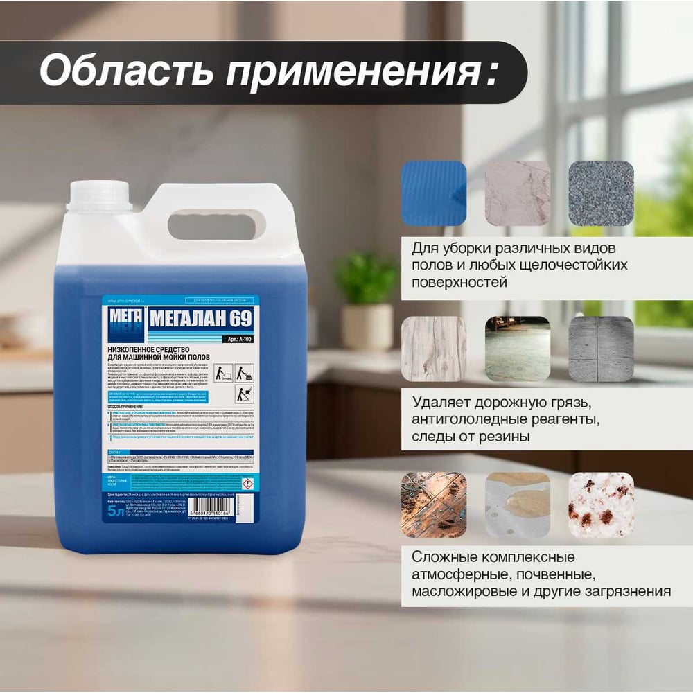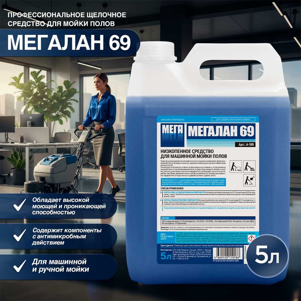 Средство для поломоечных машин Мега Лан 69 5л малопенное А-100 604342
