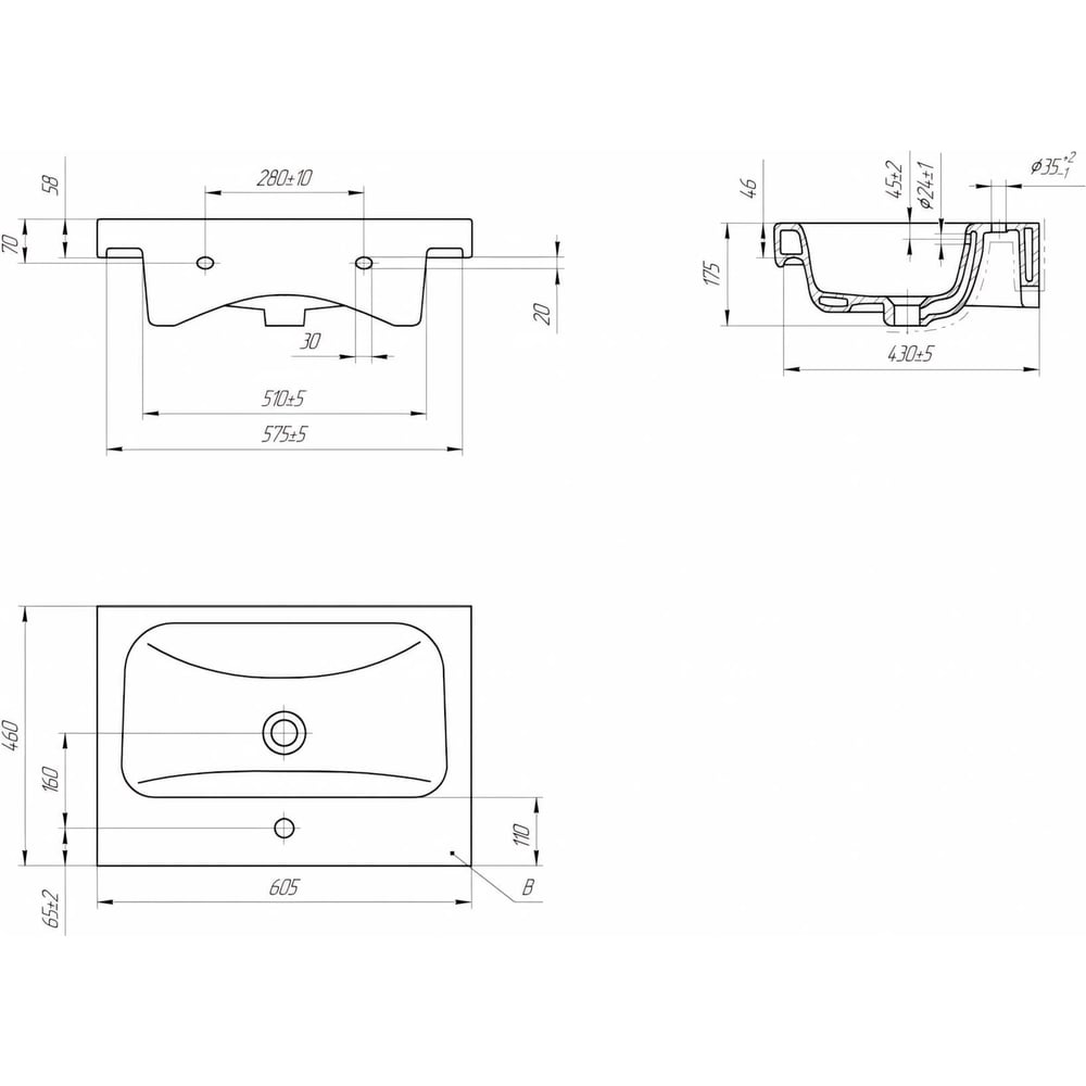 Мебельная раковина Cersanit MODUO 60, 1 отверстие S-UM-MOD60/1