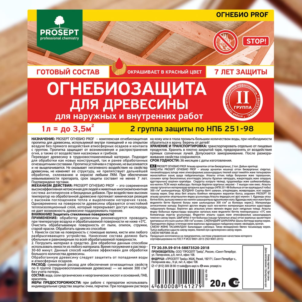 Огнебиозащита для древесины PROSEPT ОГНЕБИО PROF 006-20к