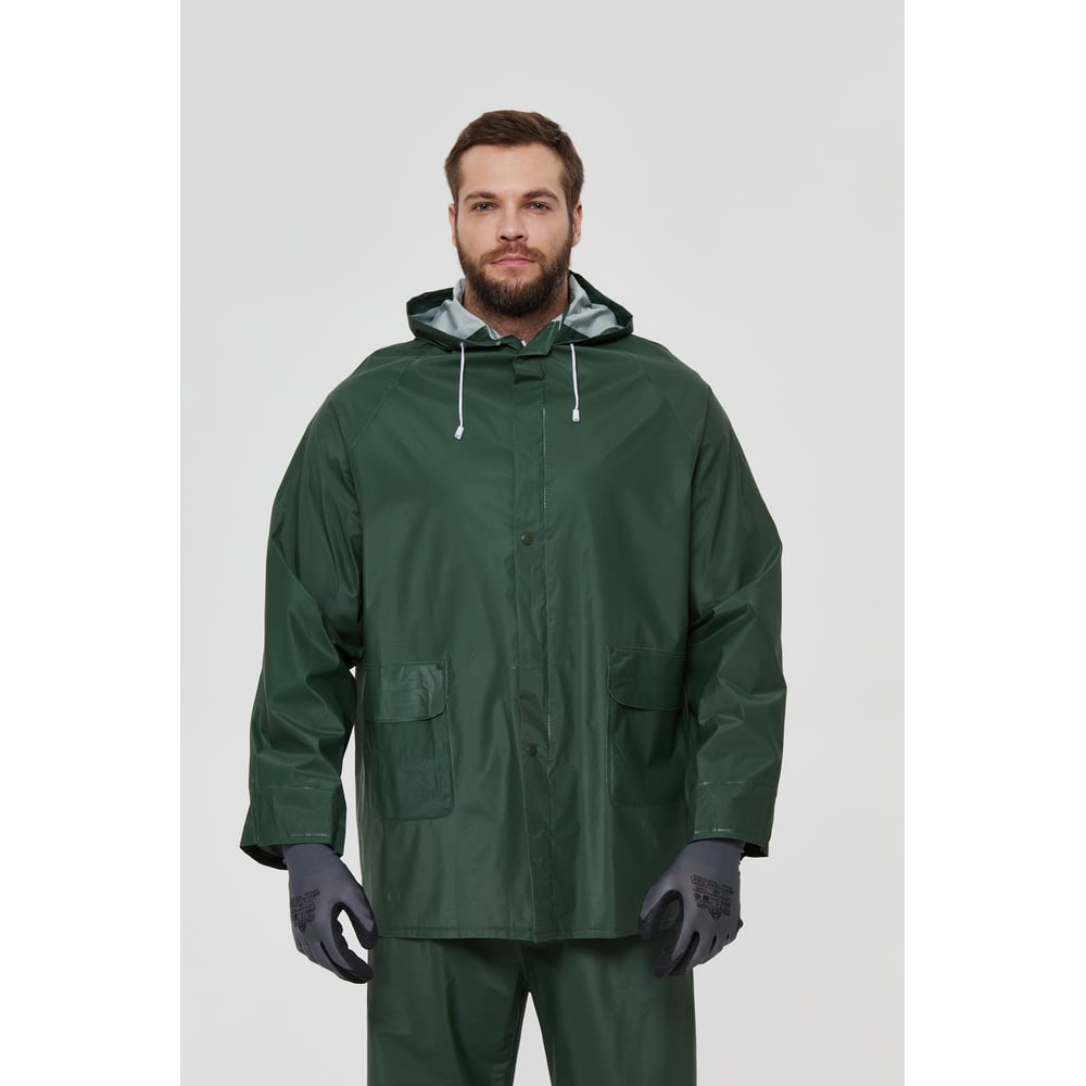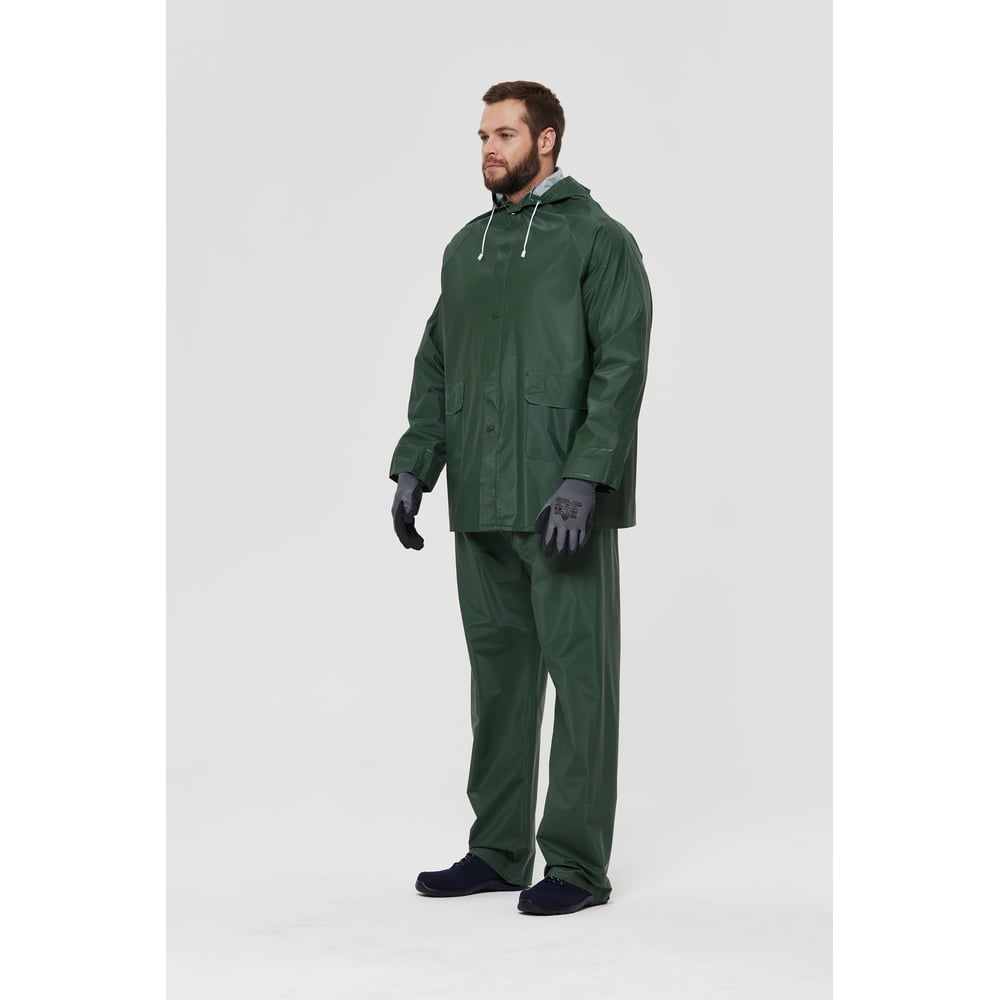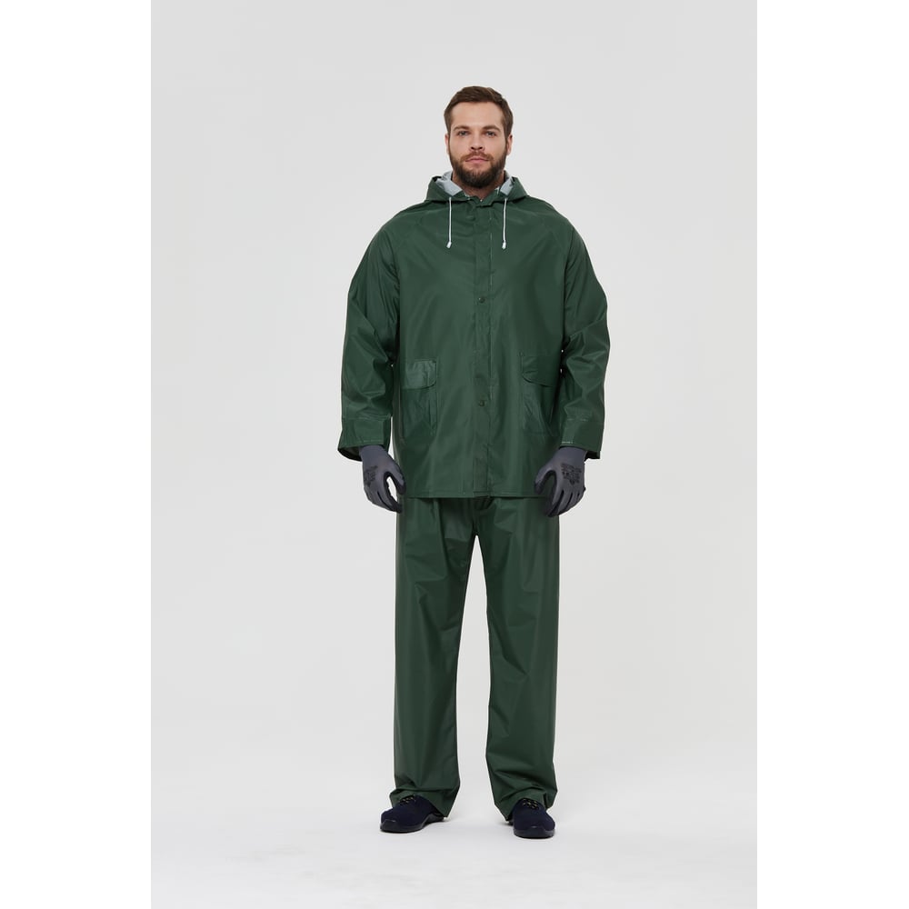 Цвет зеленый Тип костюм-двойка (куртка + брюки) Тип застежки молния Размер (буквенная система маркировки) L Размер (цифровая система маркировки) 52-54 Состав ткани 100% полиэстер с ПВХ-покрытием Плотность ткани 220 г/м² Единиц в упаковке 1 шт Световозвращающая полоса нет Размер (международная цифровая система маркировки) 52-54 Рост 172-180 см Вес модели 1.43 кг Мембранный нет ТР ТС/ТУ ТР ТС 019/2011 Возрастная группа взрослые
