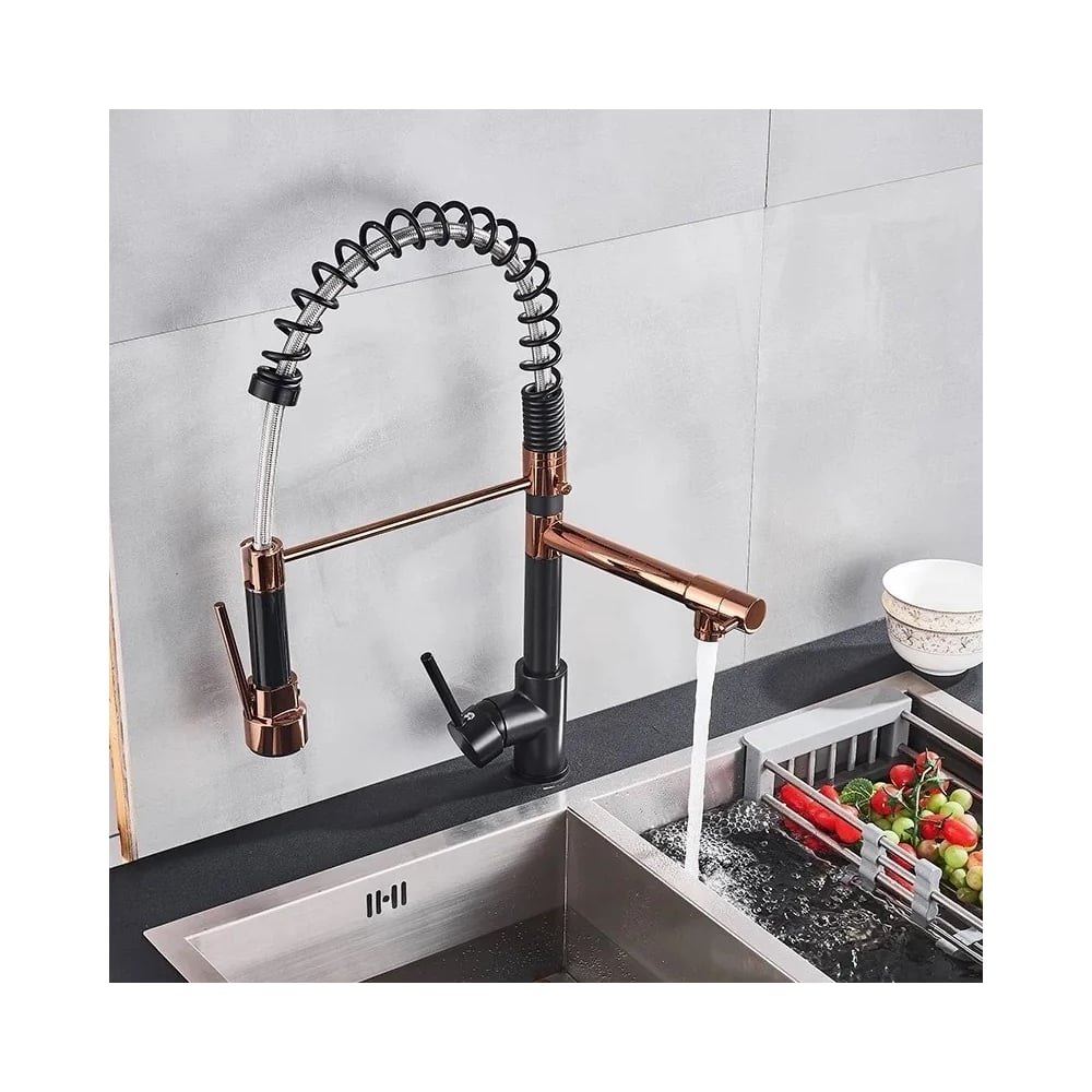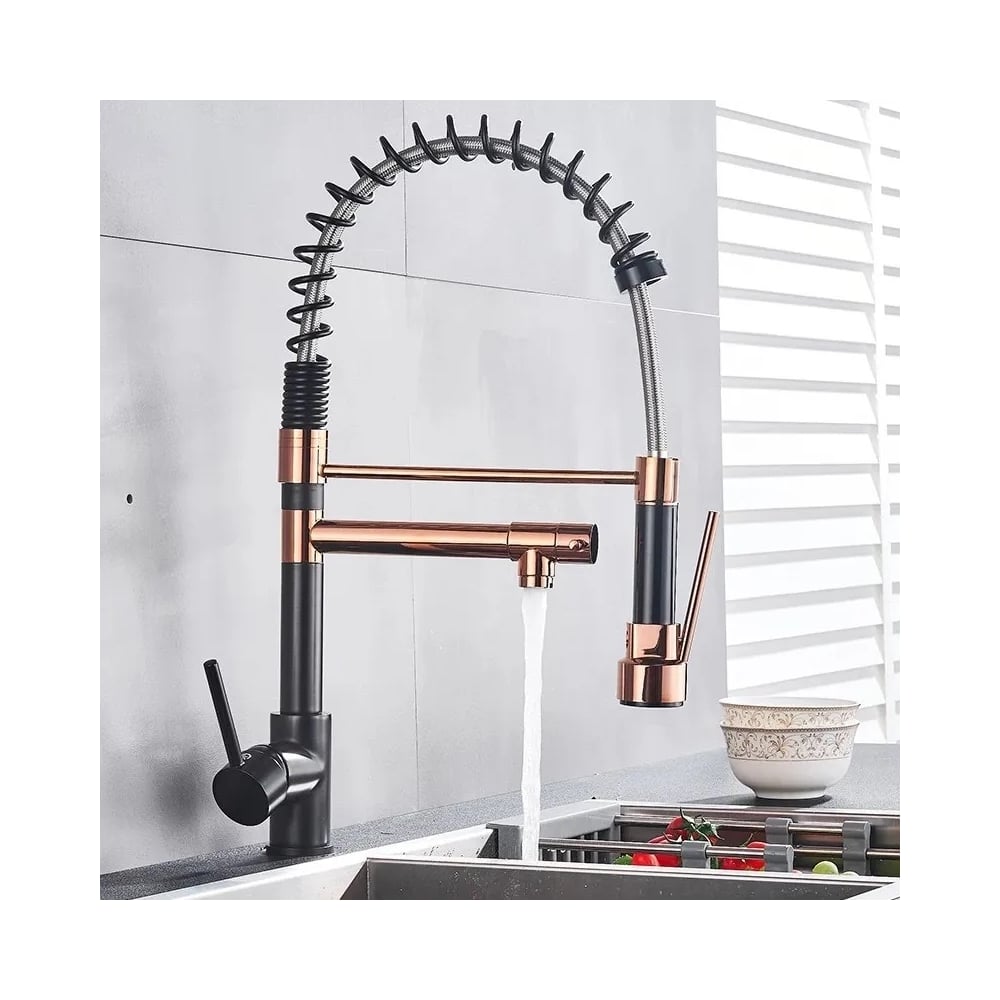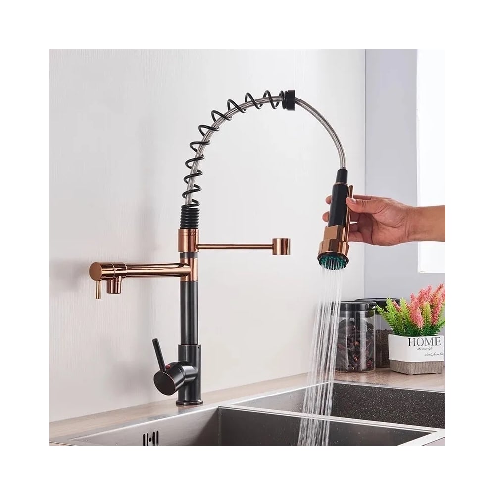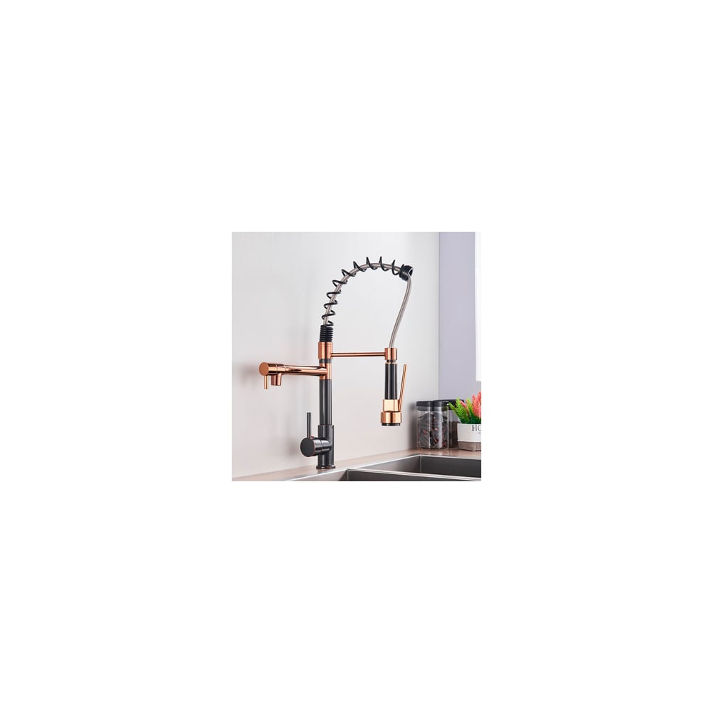 Смеситель для кухни MATRIX SMF-323147/BRG пружинный, черный + розовое золото 1020