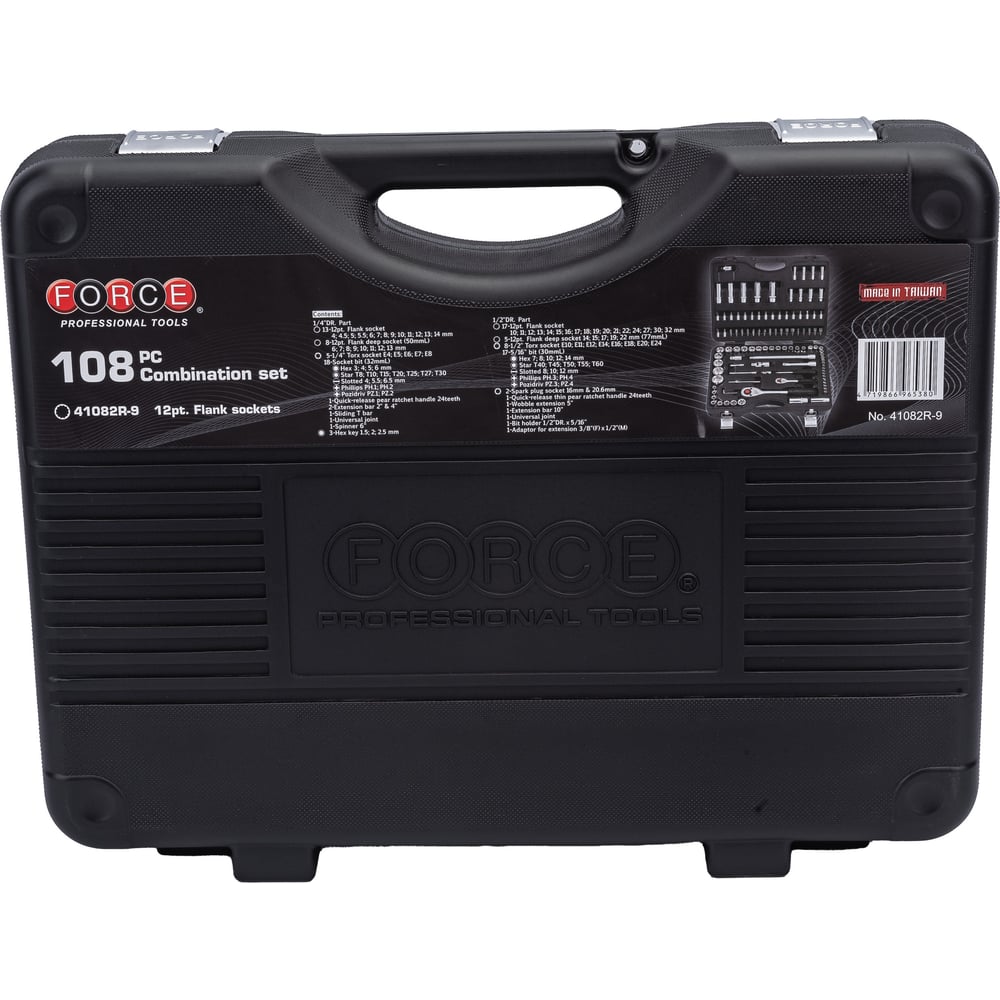 Набор головок и приспособлений FORCE 108 предметов 12 гранные 1/2, 1/4 41082R-9