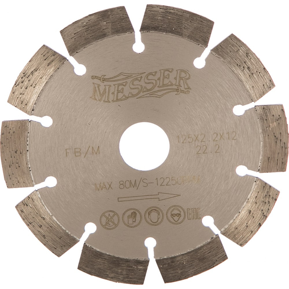 MESSER диск алмазный сегментный FB/M по железобетону, с возможностью сухой резки, 125D-2.2T-12W-10S-22.2 01-15-125