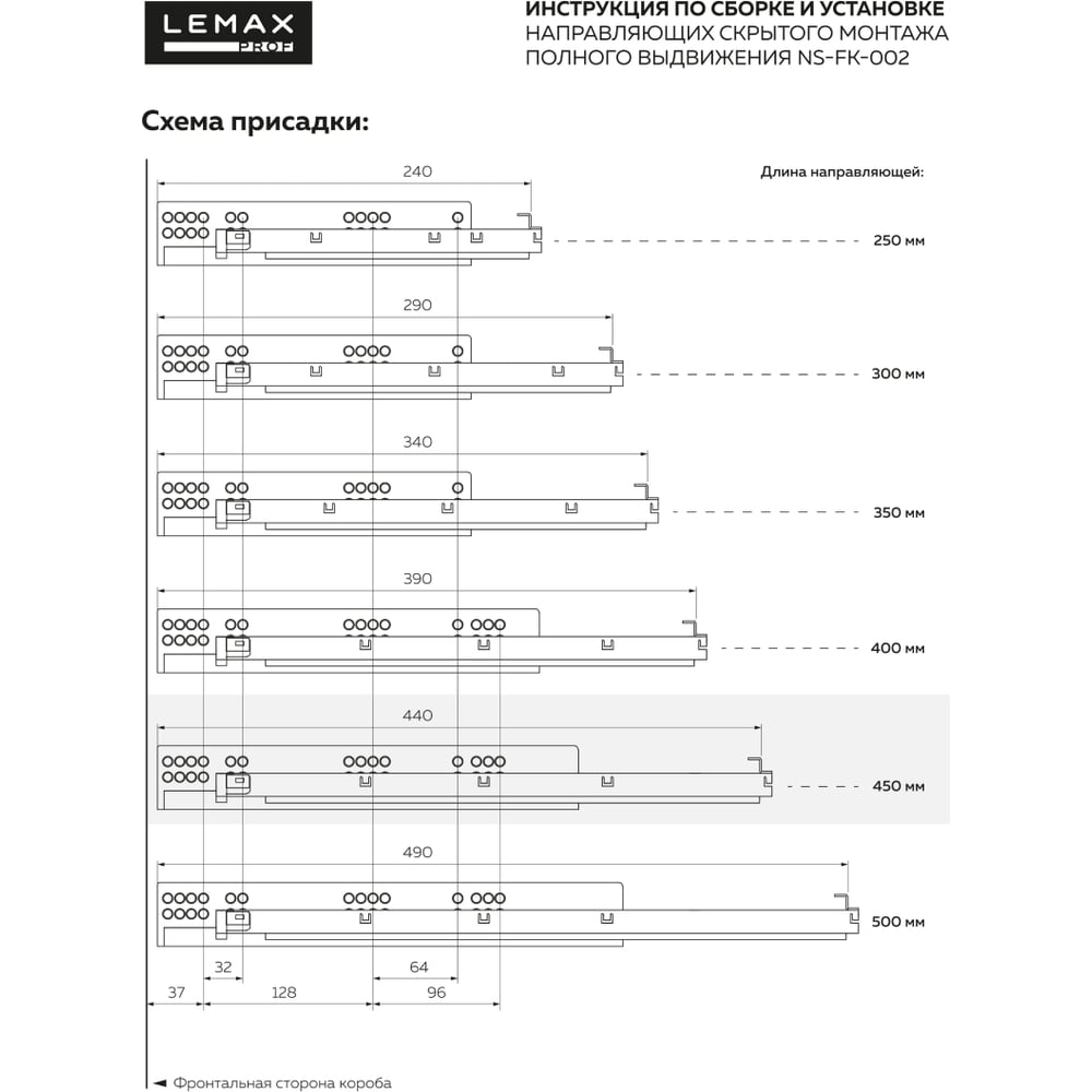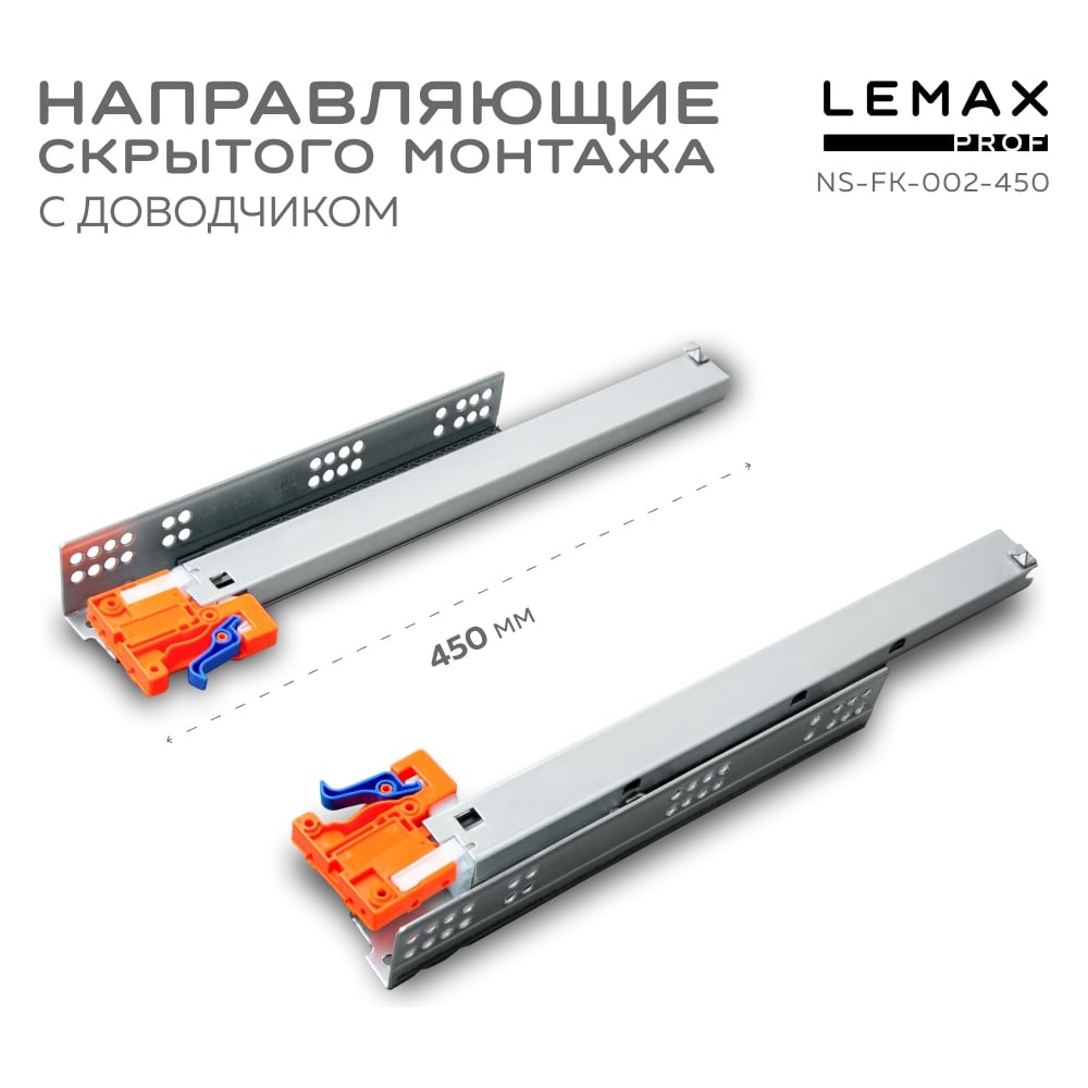 Направляющая скрытого монтажа Lemax prof полное выдвижение, с регул. планкой, 450 мм NS-FK-002-450