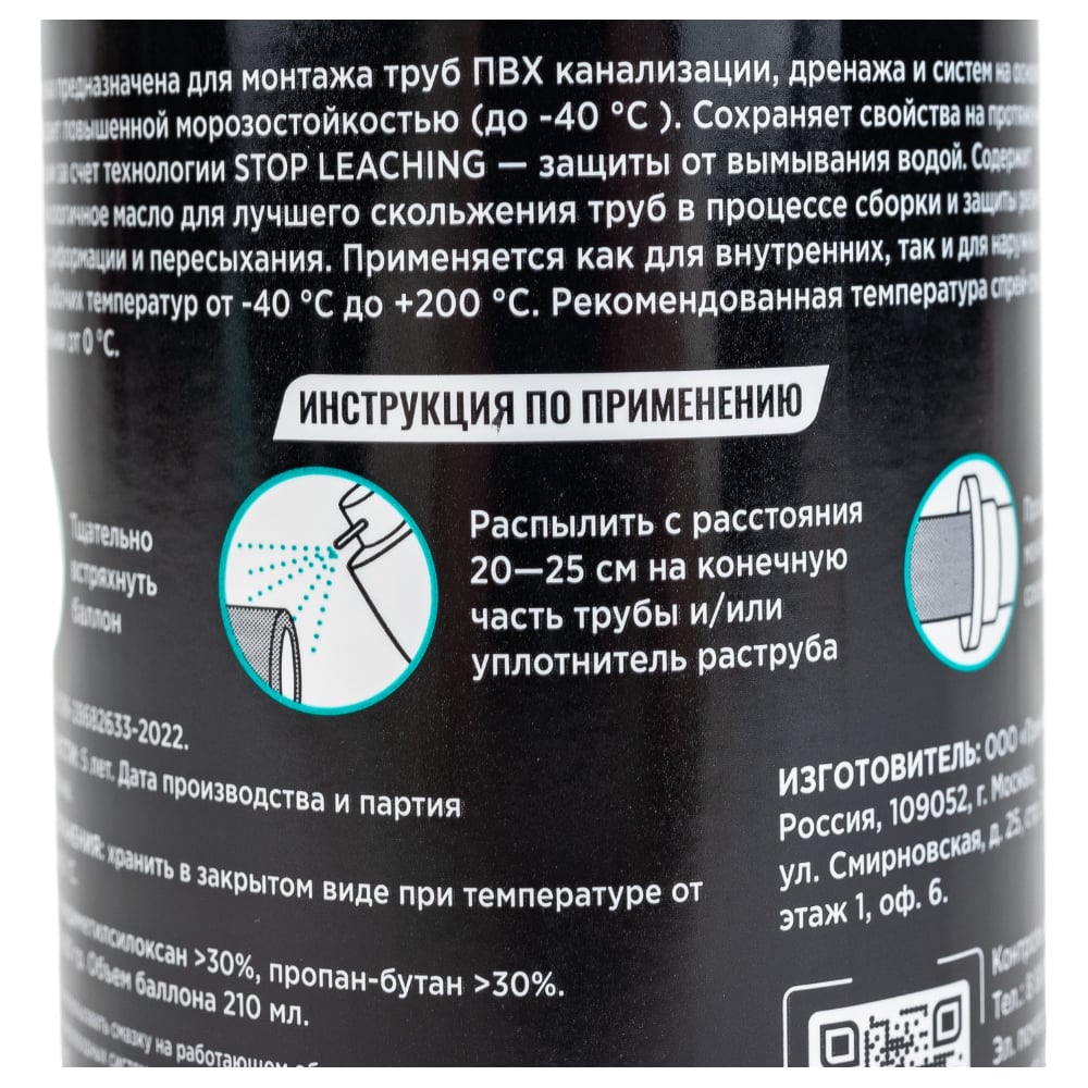 | Состав | Полидиметилсилоксан 30%, пропан-бутан 30% |