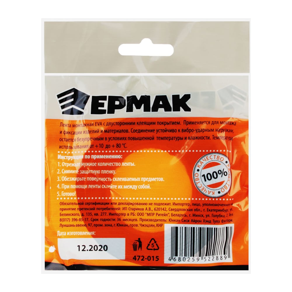 Монтажная двухсторонняя клеящая лента для АВТО ЕРМАК 472-015