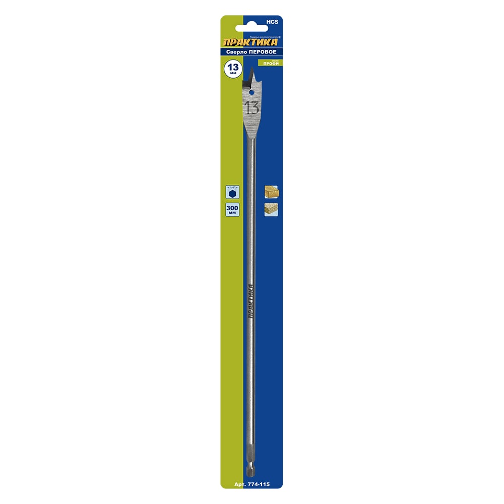 Сверло перовое по дереву (13х300 мм) ПРАКТИКА 774-115