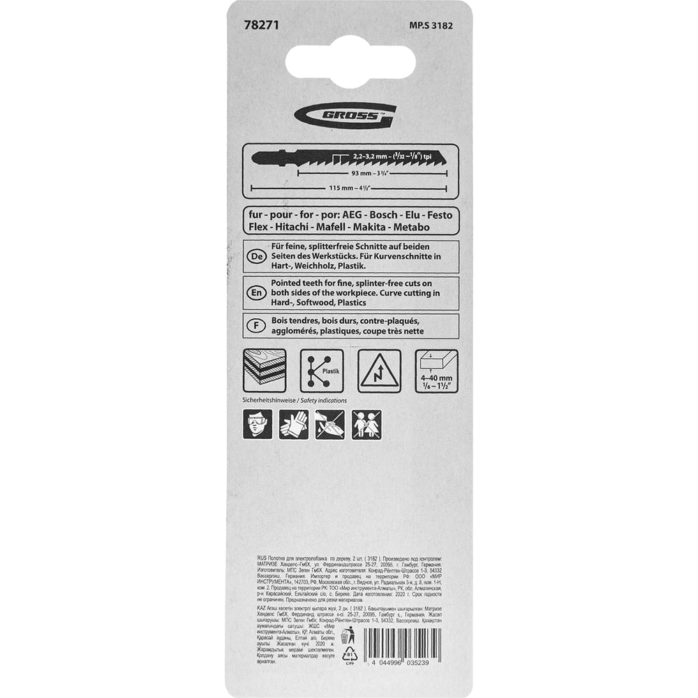 Полотна для электролобзика по дереву GROSS 3182 78271