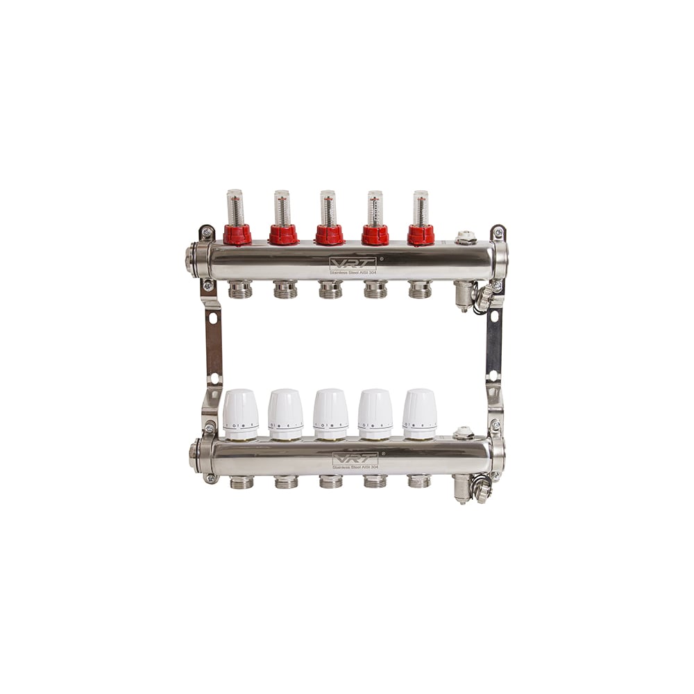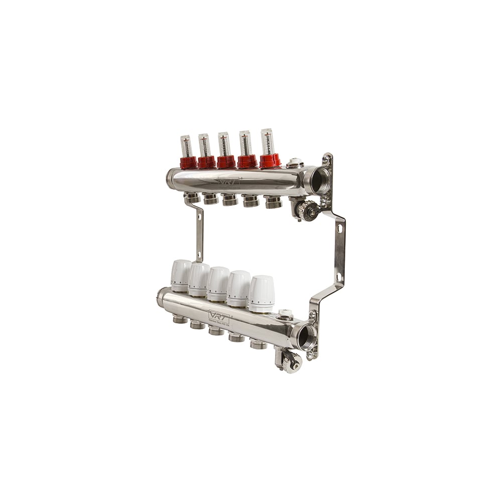 Коллекторная группа VRT 1"х3/4", евроконус, 5 выходов, c расходомерами 530144