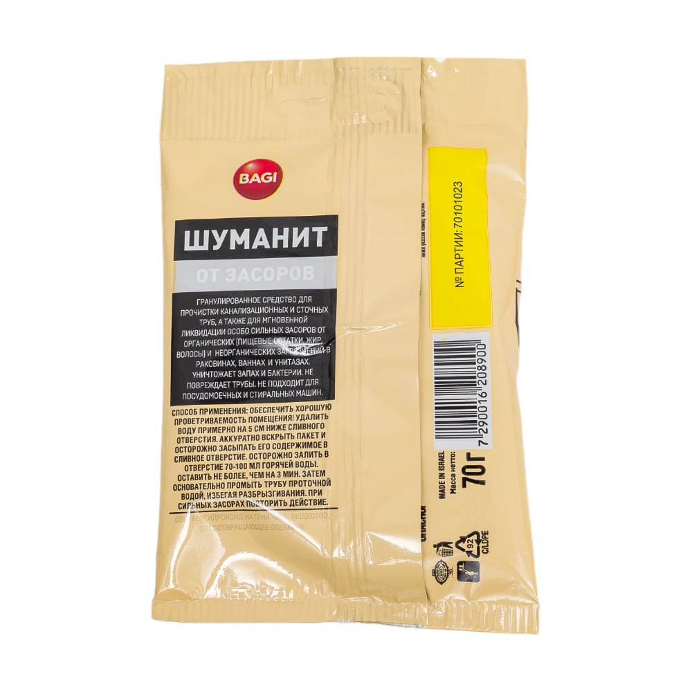 Порционное гранулированное средство для экстренного устранения засоров в трубопроводных системах Bagi Шуманит 70 г 1015050022