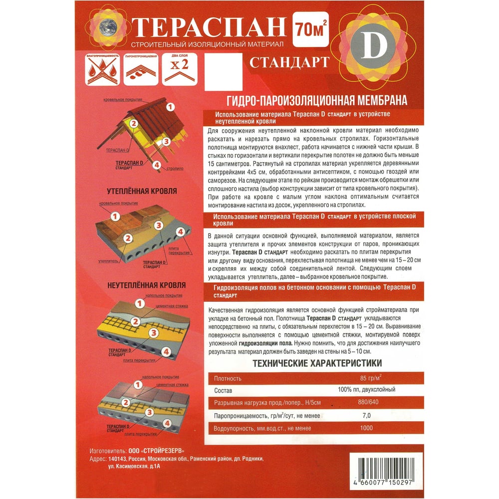 Двухслойный гидро-пароизоляционный материал ТЕРАСПАН Д СТАНДАРТ повышенной прочности, 70 кв. м, 4660077150297