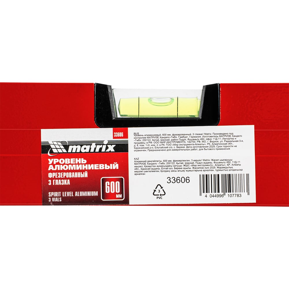 Алюминиевый уровень 600 мм MATRIX 33606