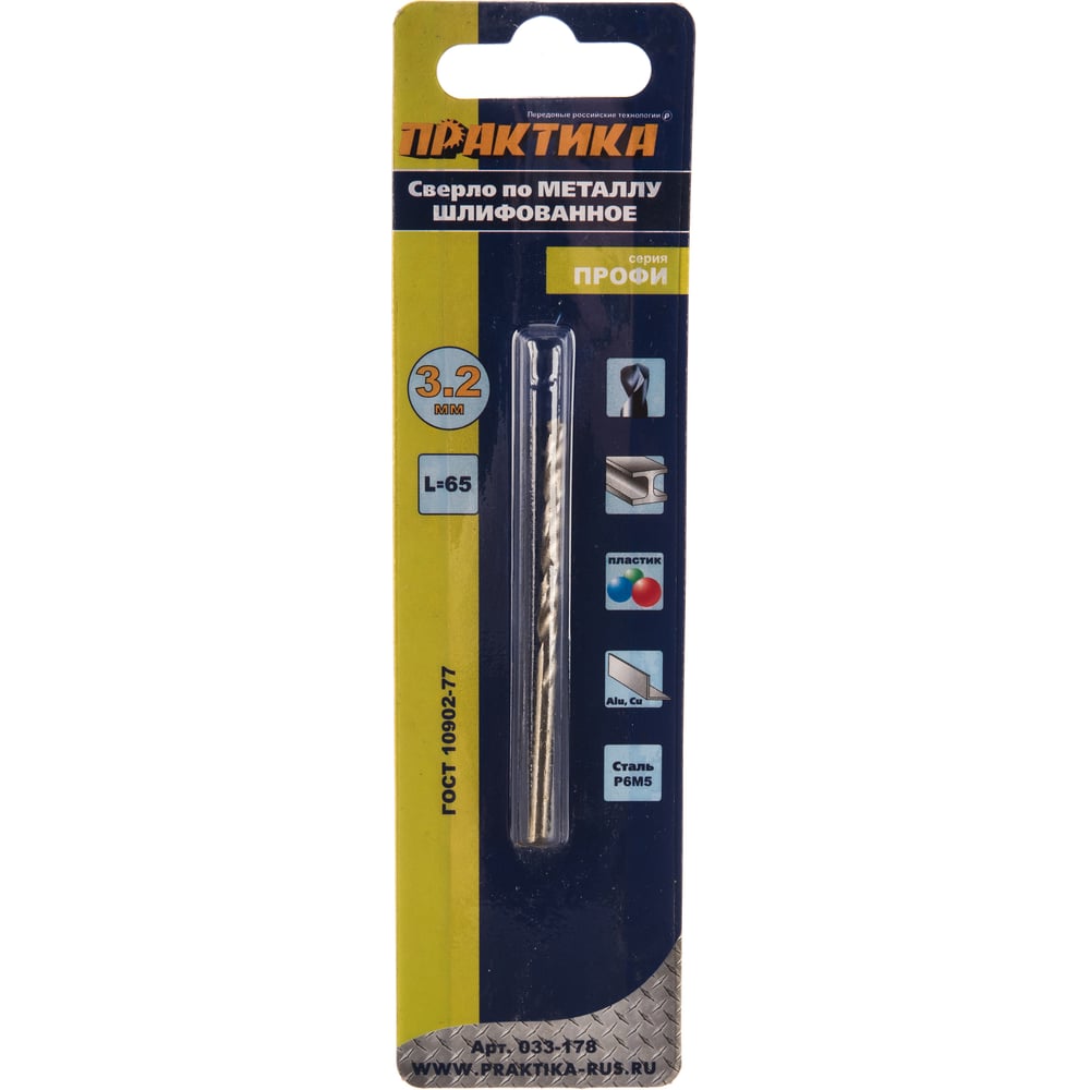 Сверло по металлу (3.2х65 мм) ПРАКТИКА 033-178