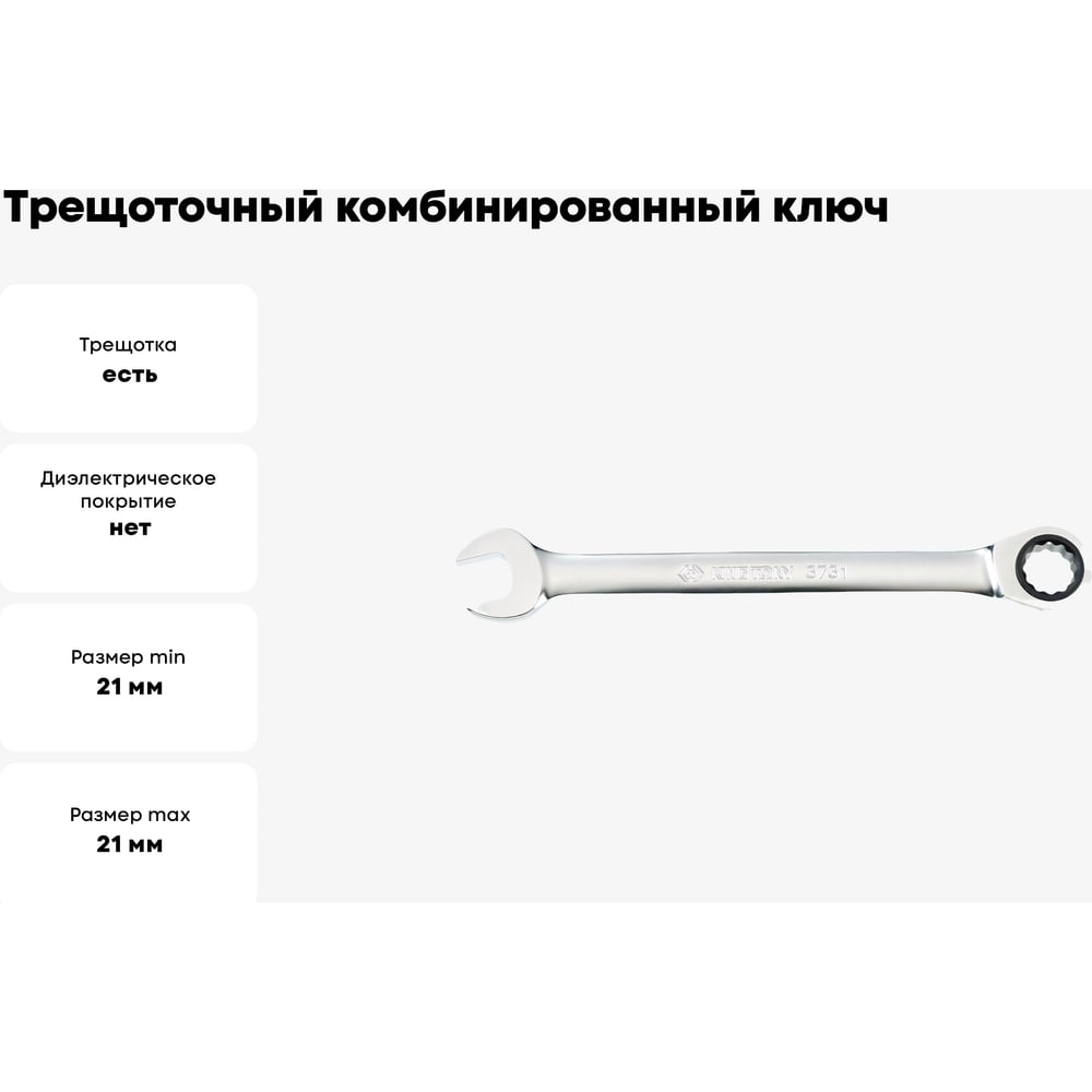 Трещоточный комбинированный ключ 21мм KING TONY 373121M