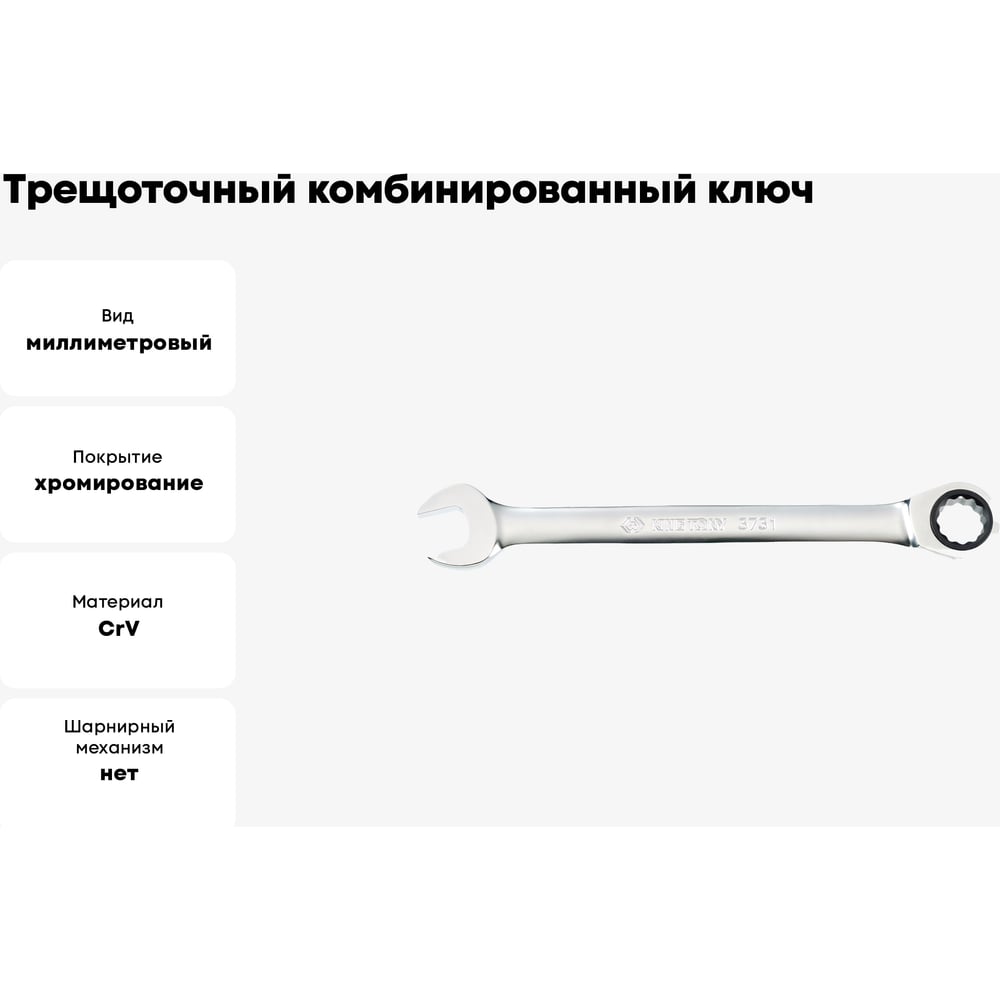 Длина 240 мм Материал CrV Покрытие хромирование Вид миллиметровый Класс товара Профессиональный Вес нетто 0.334 кг Диэлектрическое покрытие нет Трещотка есть Шарнирный механизм нет Размер max (дюйм) нет Размер min (дюйм) нет Количество граней кольцевой головки 12 Размер min (мм) 21 Размер max (мм) 21