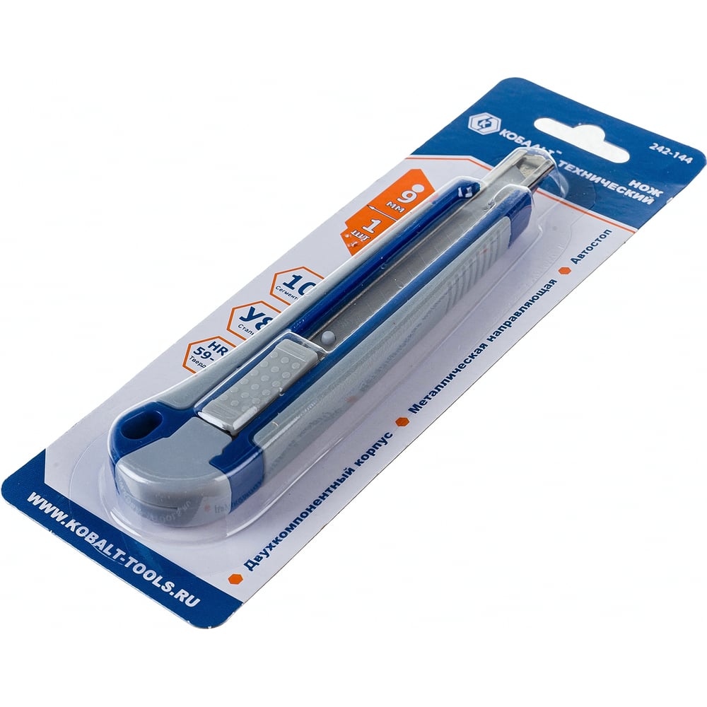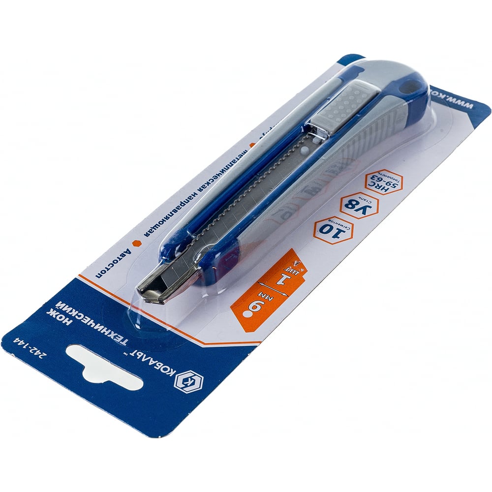 Технический нож, лезвие 9мм, двухкомпонентный корпус, металлическая направляющая, автостоп КОБАЛЬТ 242-144