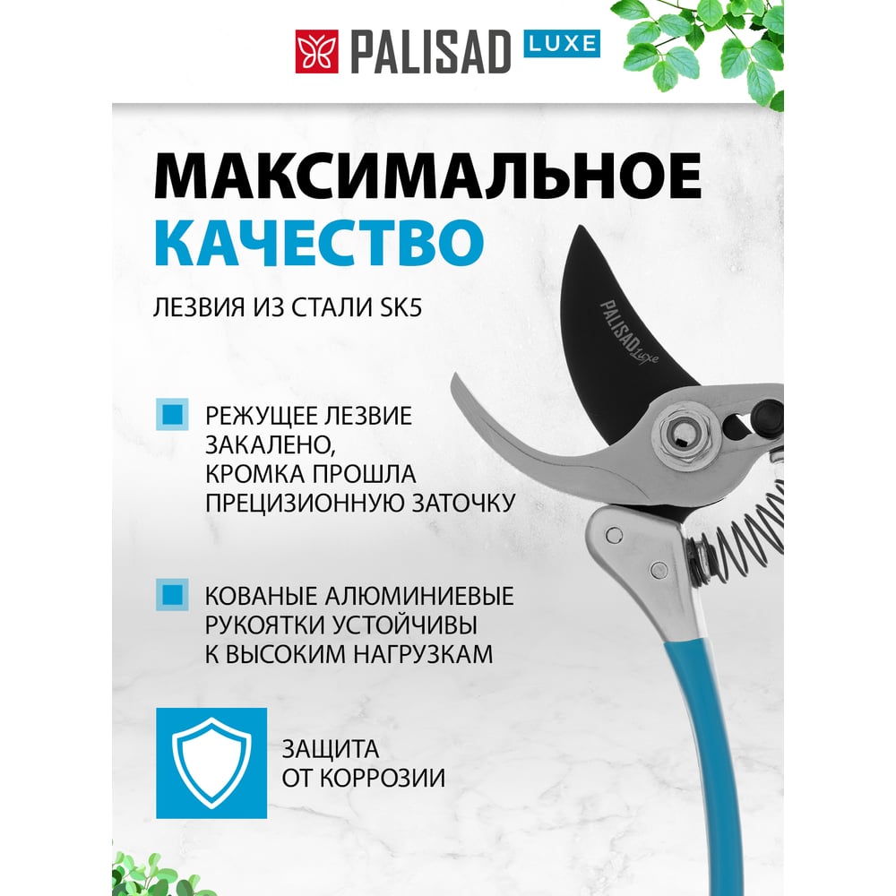 Усиленный секатор PALISAD LUXE 210 мм, прямой рез, металлические рукоятки 60501