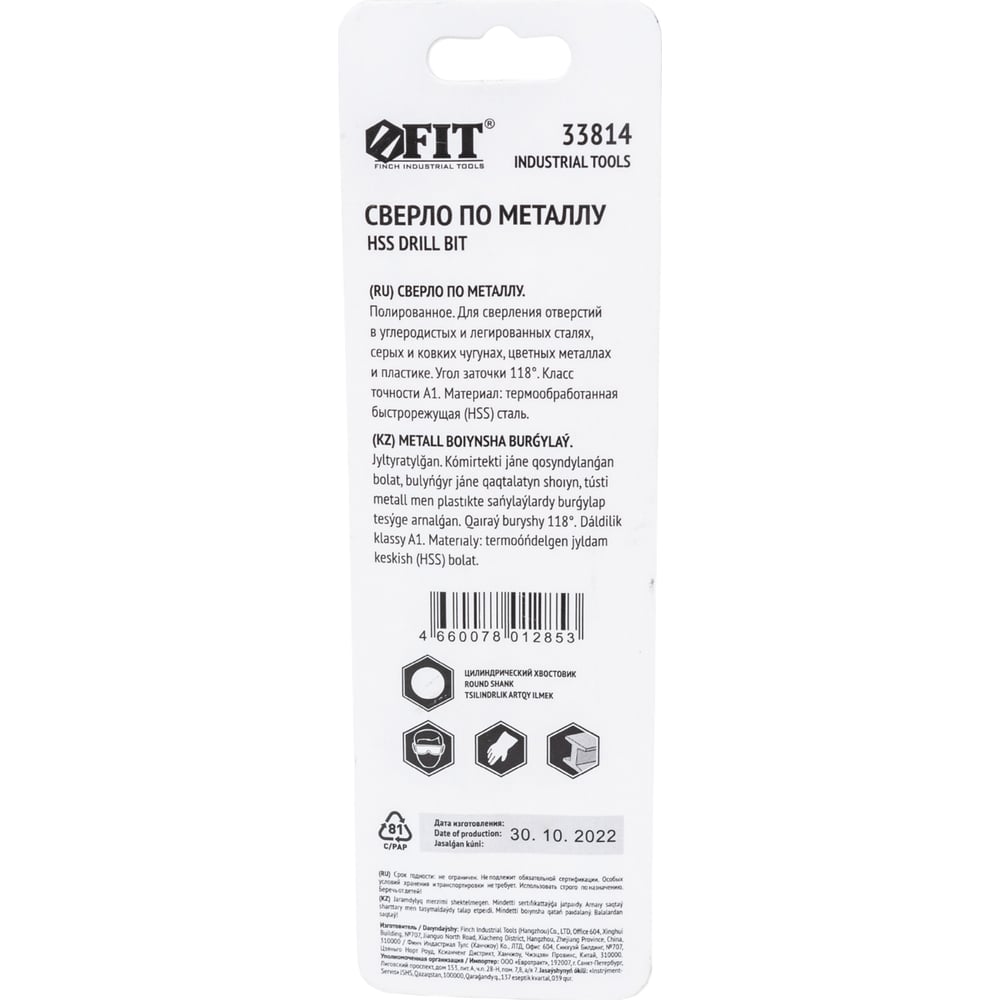 Сверло по металлу HSS полированное в блистере 6 мм FIT IT 33814