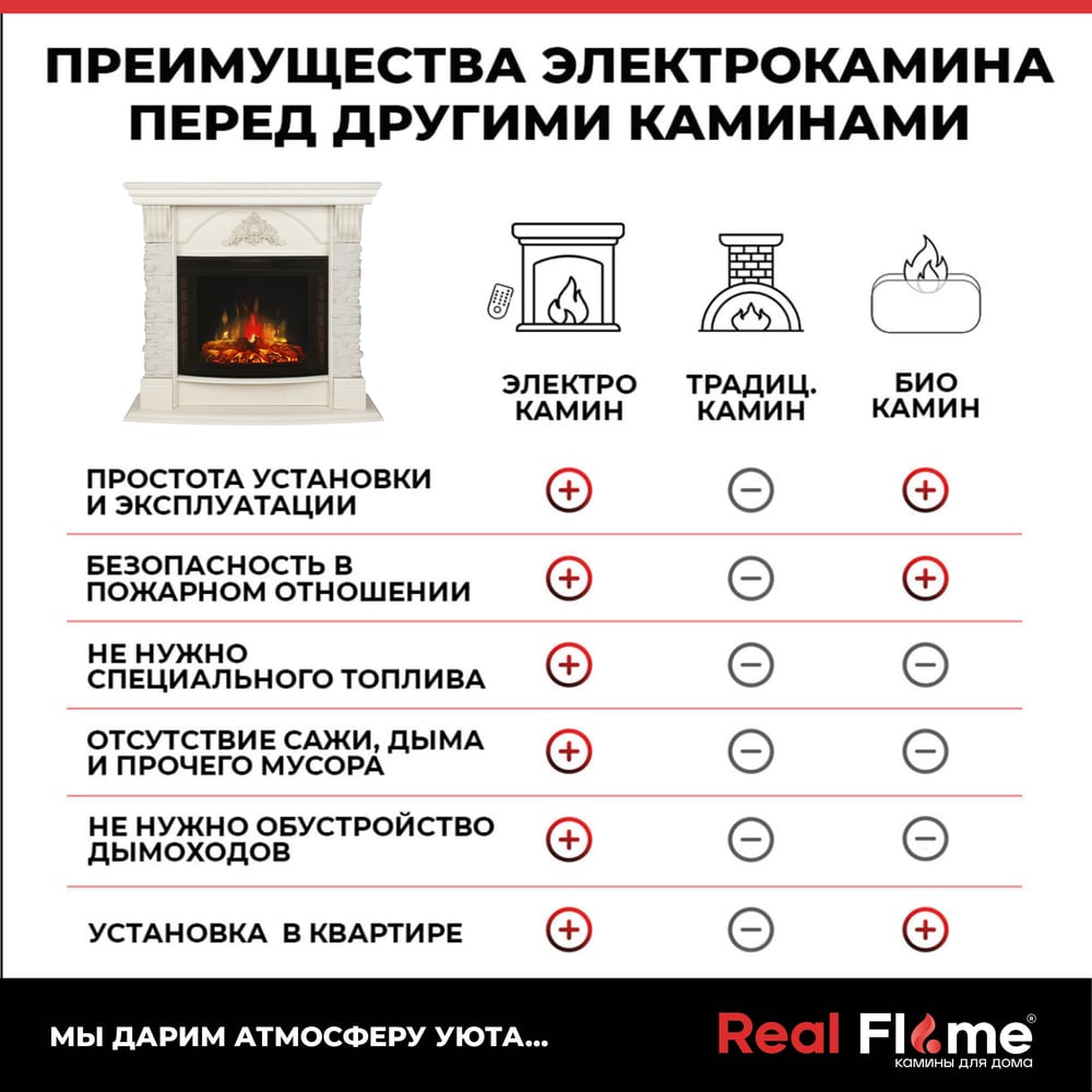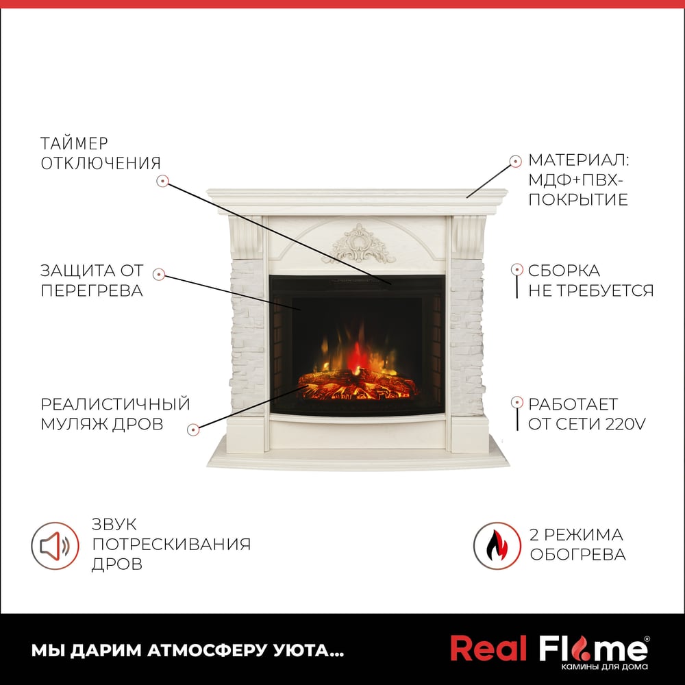 Электрический камин RealFlame Pallas 25/25,5 WT+Evrika 25,5 LED 10015022