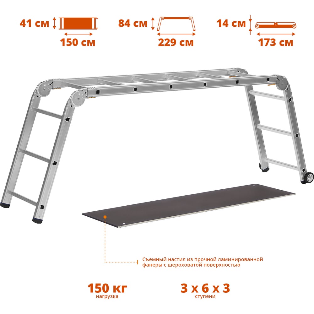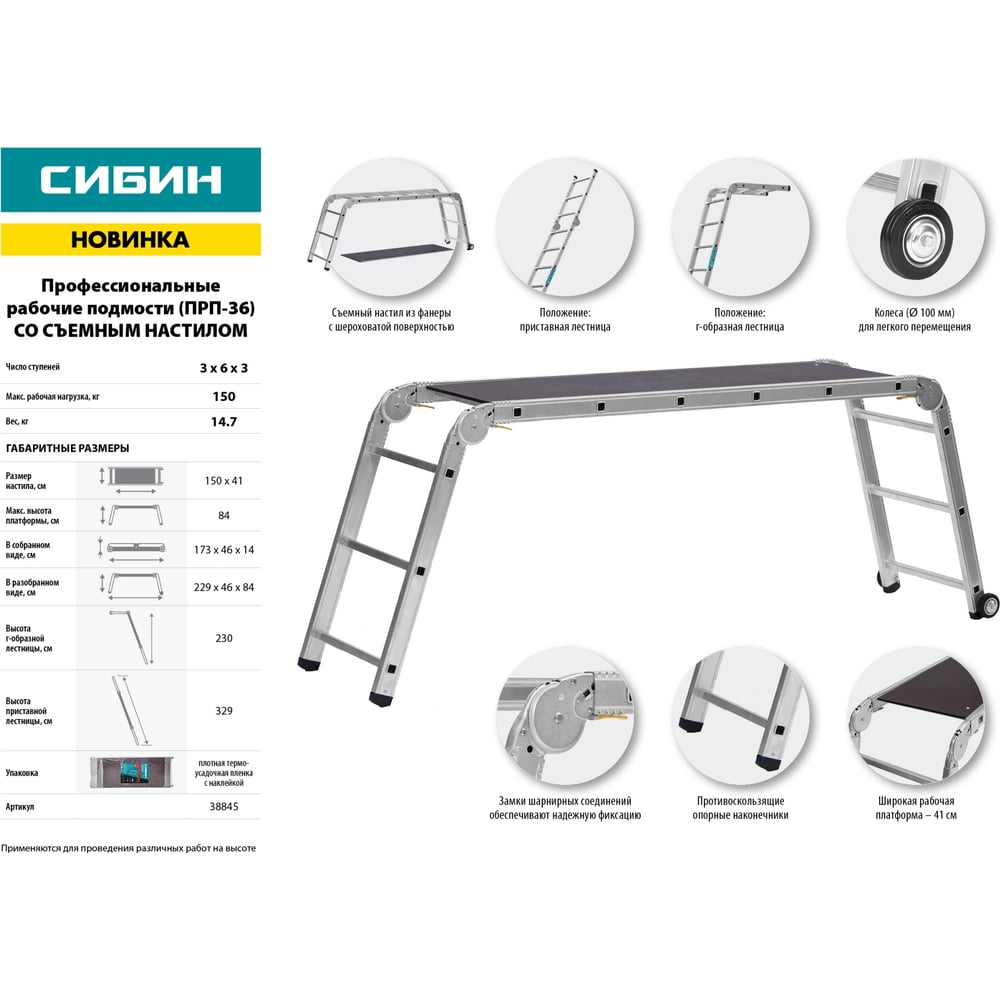 Профессиональные рабочие алюминиевые складные подмости СИБИН ПРП-36 38845