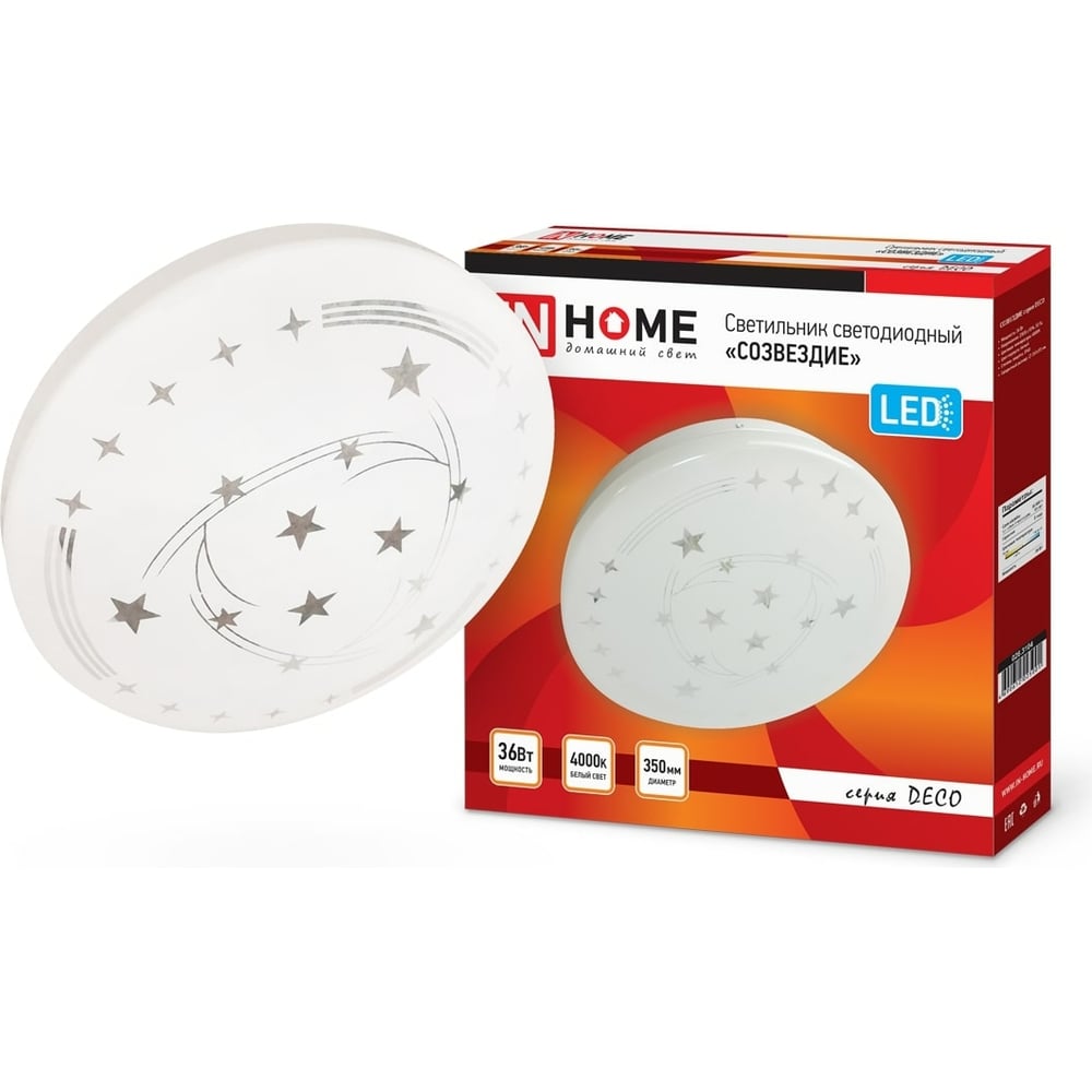 Светодиодный светильник IN HOME серии DECO 36Вт 230В 4000К 2340лм 350мм СОЗВЕЗДИЕ 4690612025001