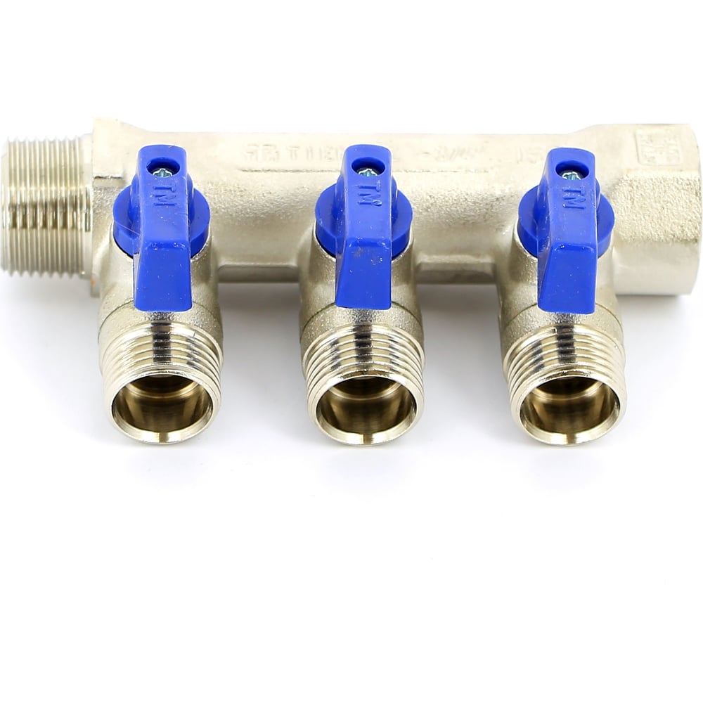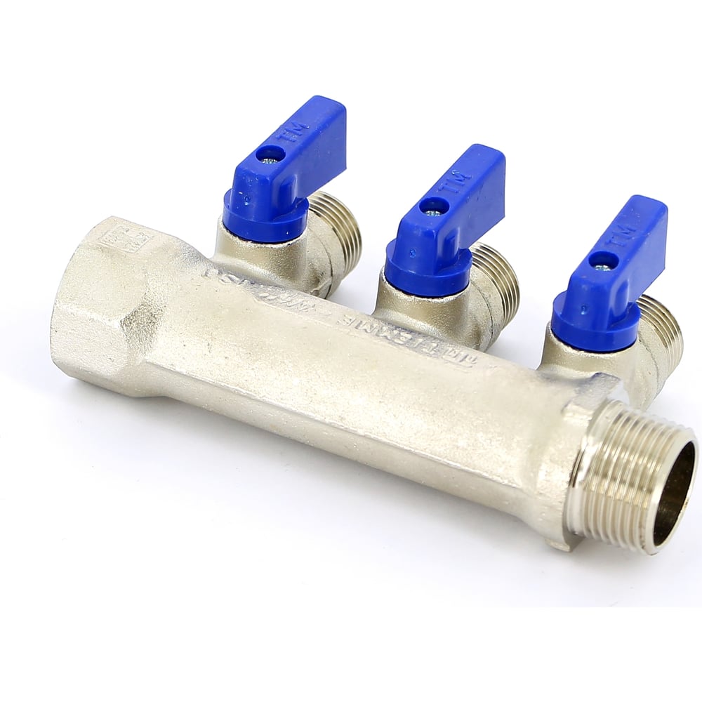 Коллектор Tiemme НВ, 3/4", 3х1/2"х16, Н 36 мм, никелированный, с кранами 1820003