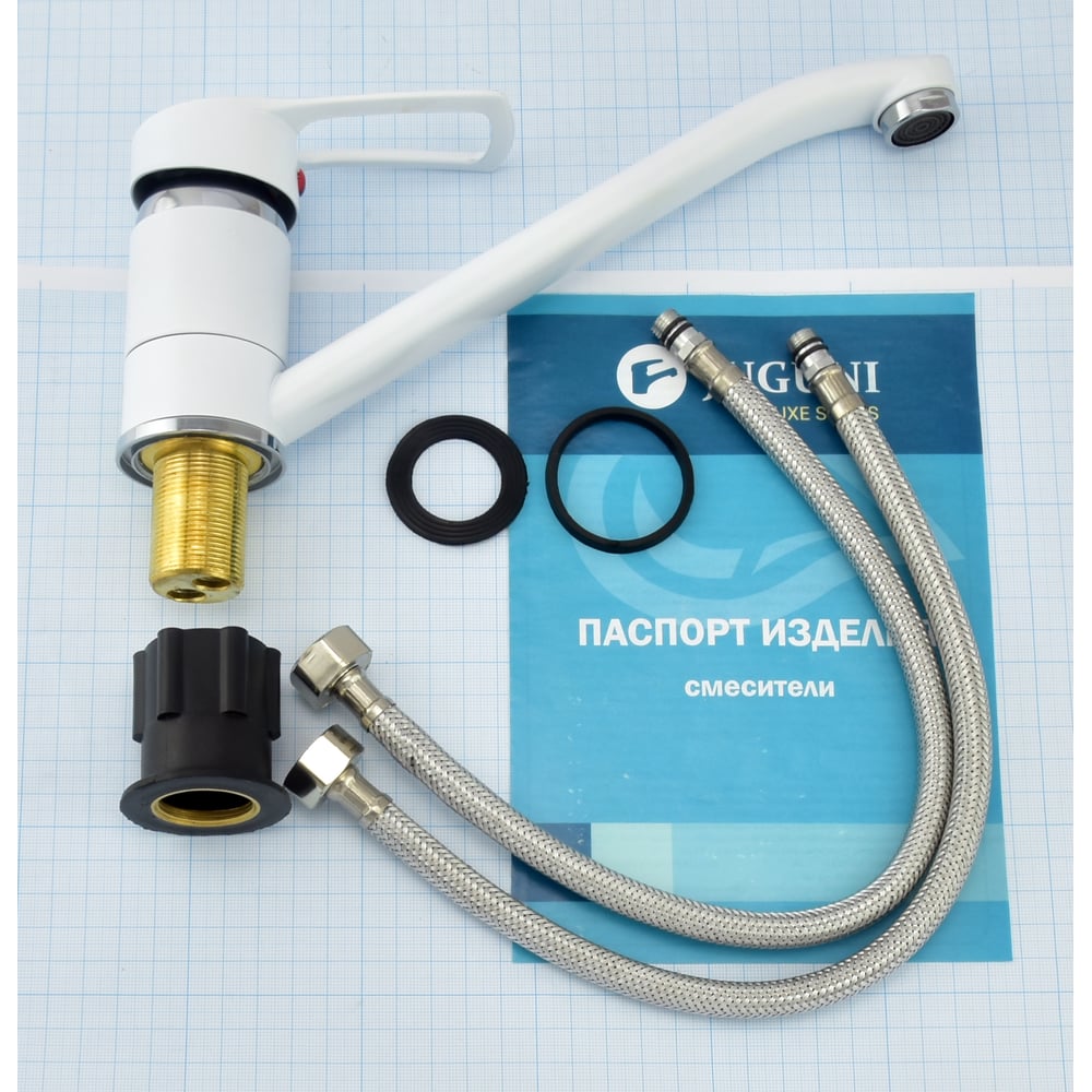 Одноручный смеситель для мойки Juguni Luxe с поворотным изливом, картридж 40 мм, белый 0402.446