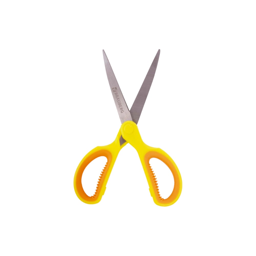 Ножницы BRAUBERG Extra 155 мм, ребристые резиновые вставки, оранжево-желтые 236450