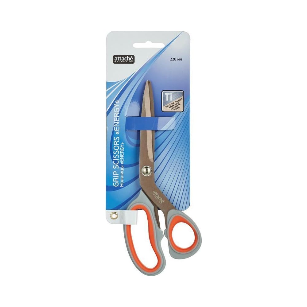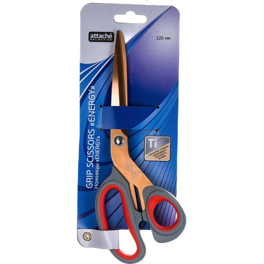 Ножницы Attache Selection Energy 220 мм, эргономичные ручки, покрытие Titanium, черно-серые 604065
