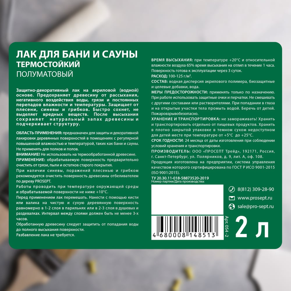 Лак для бани и сауны PROSEPT 2 л 054-2