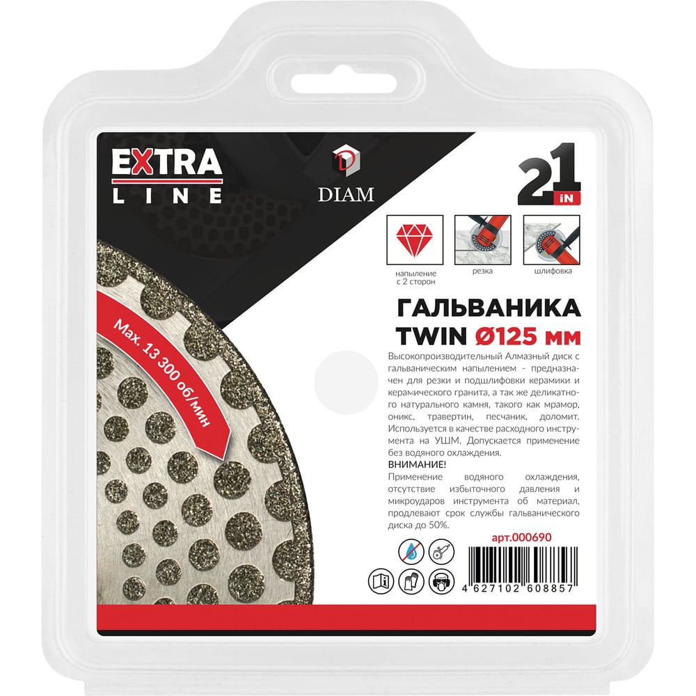 Круг алмазный отрезной/шлифовальный Гальваника TWIN (125х22.2 мм) DIAM 000690