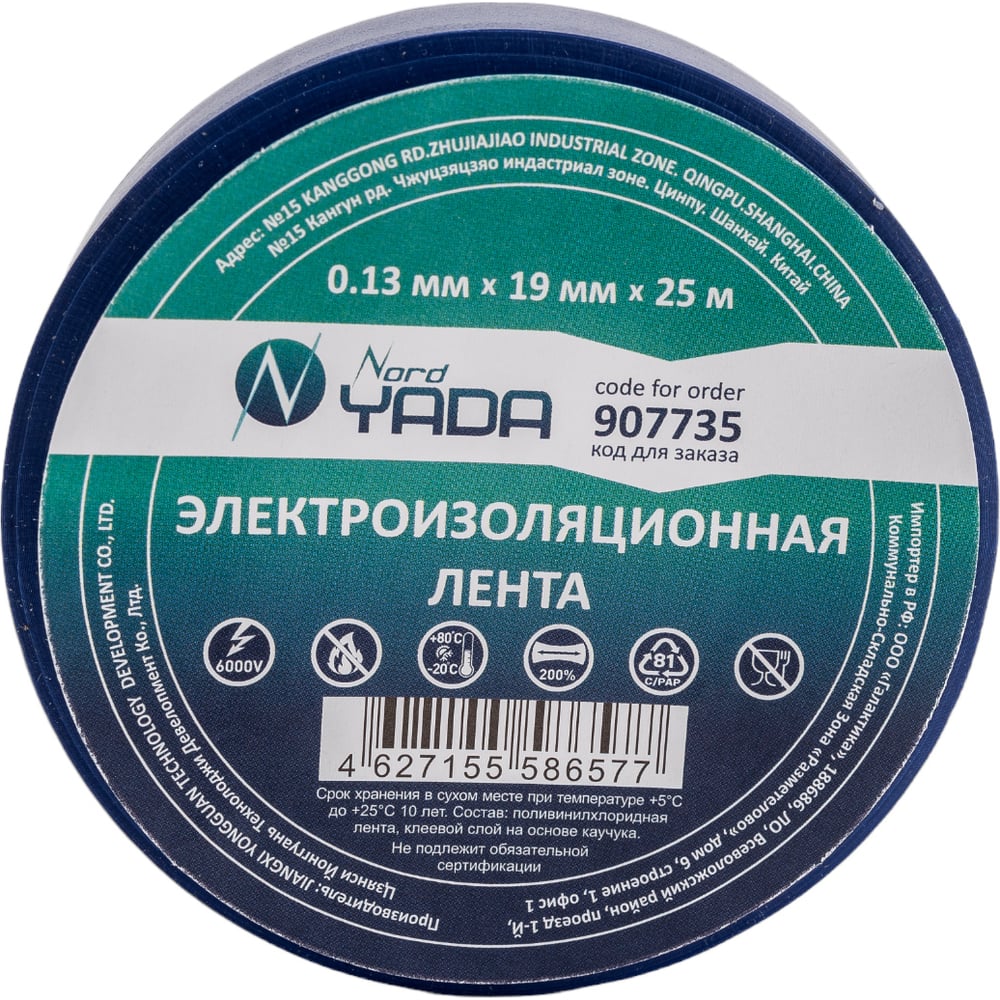 Изолента Nord-Yada 19мм х 25м синяя 907735