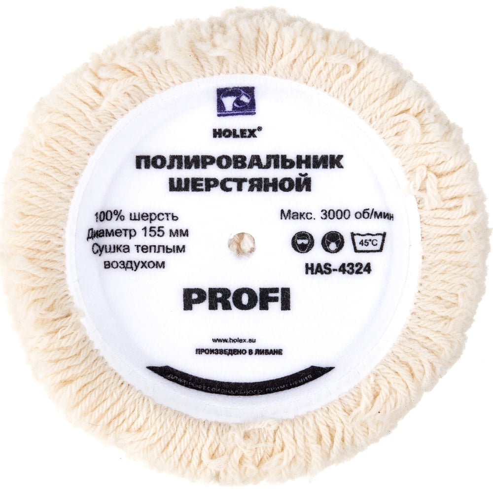 Круг полировальный из крученой шерсти на жёсткой основе PROFI 155 мм HOLEX HAS-4324