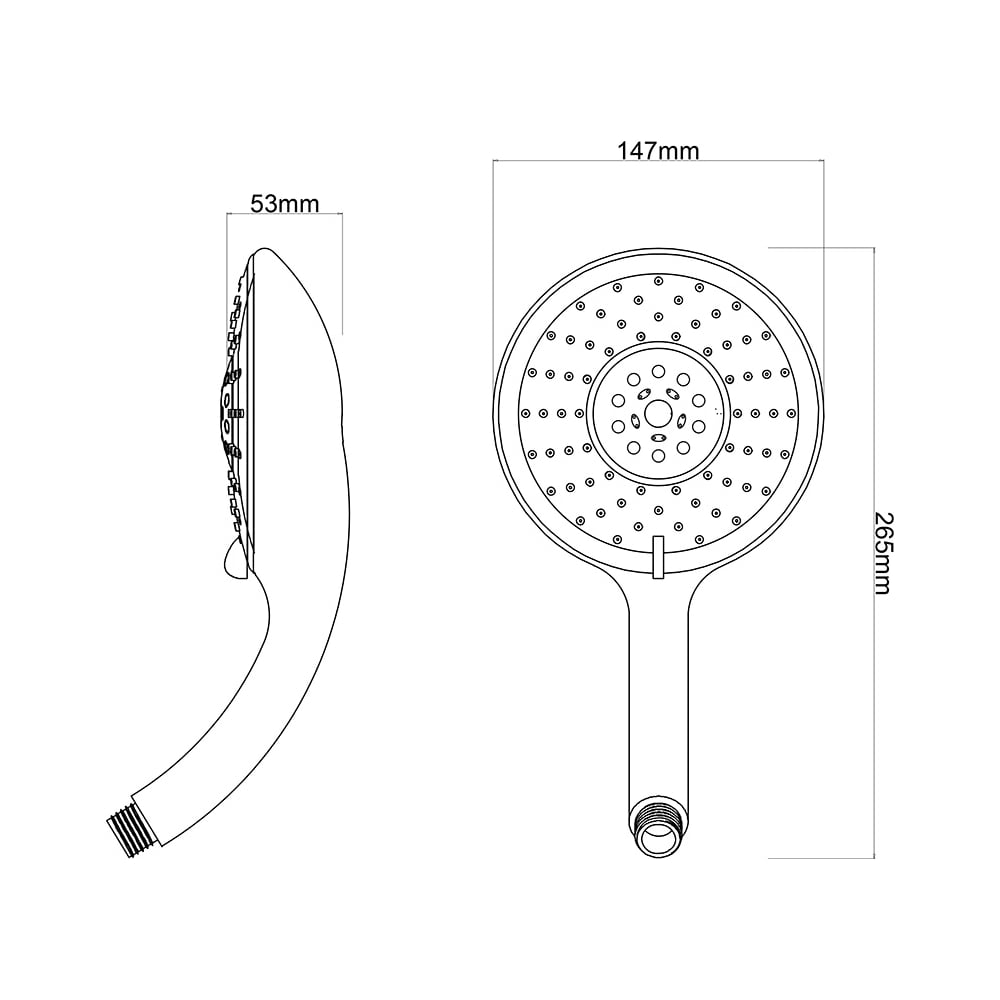 Материал пластик Цвет хром Форма круглая Количество режимов 3 Подсветка нет Резьба 1/2M дюйм Держатель нет Размер головки лейки 150 мм Шланг нет Ширина головки лейки 150 мм Общая длина лейки 265 мм Лейка со стоп кнопкой нет