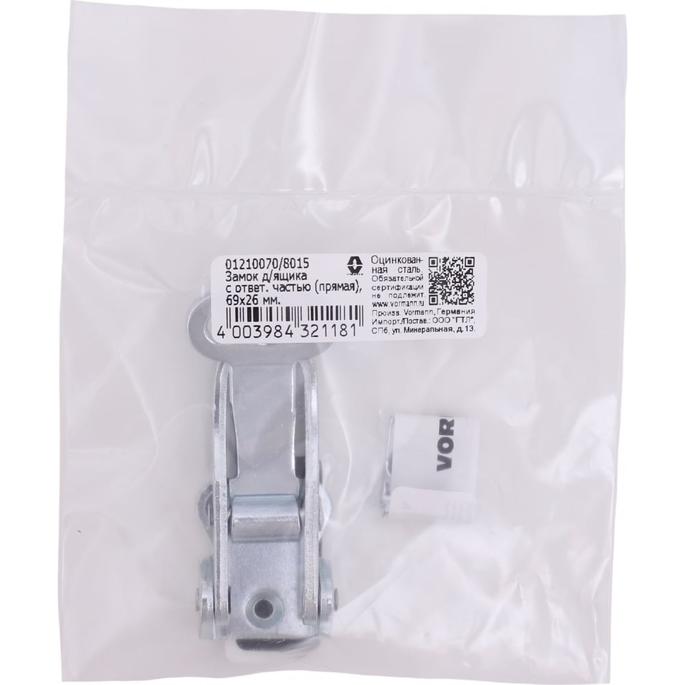 Замок для ящика VORMANN с прямой ответной частью 69х26 мм, оцинкованный 01210070/8015