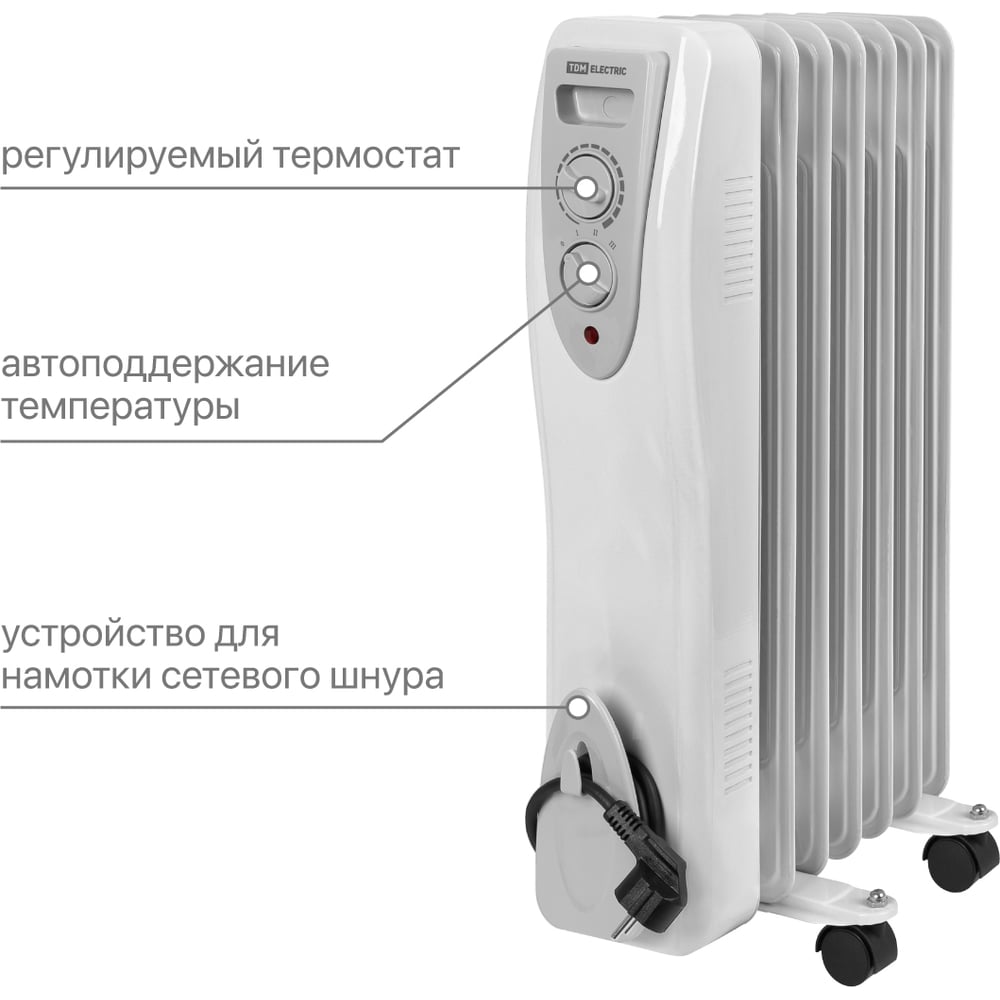 Масляный обогреватель TDM ELECTRIC МО-7, 1500 Вт, 7 секций, регулировка мощности 550/950/1500 Вт, термостат, SQ2501-0901