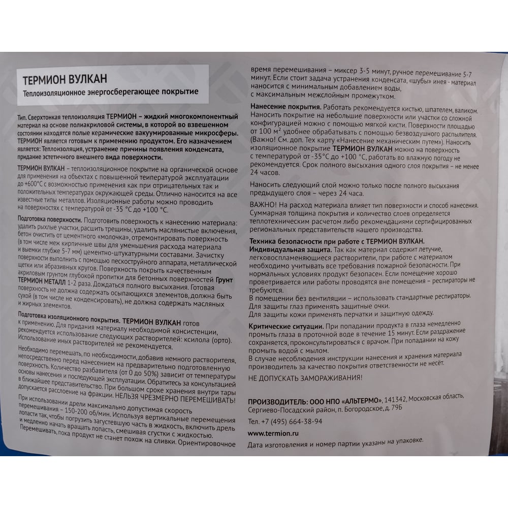 Жидкая теплоизоляция ТЕРМИОН Вулкан 21168694