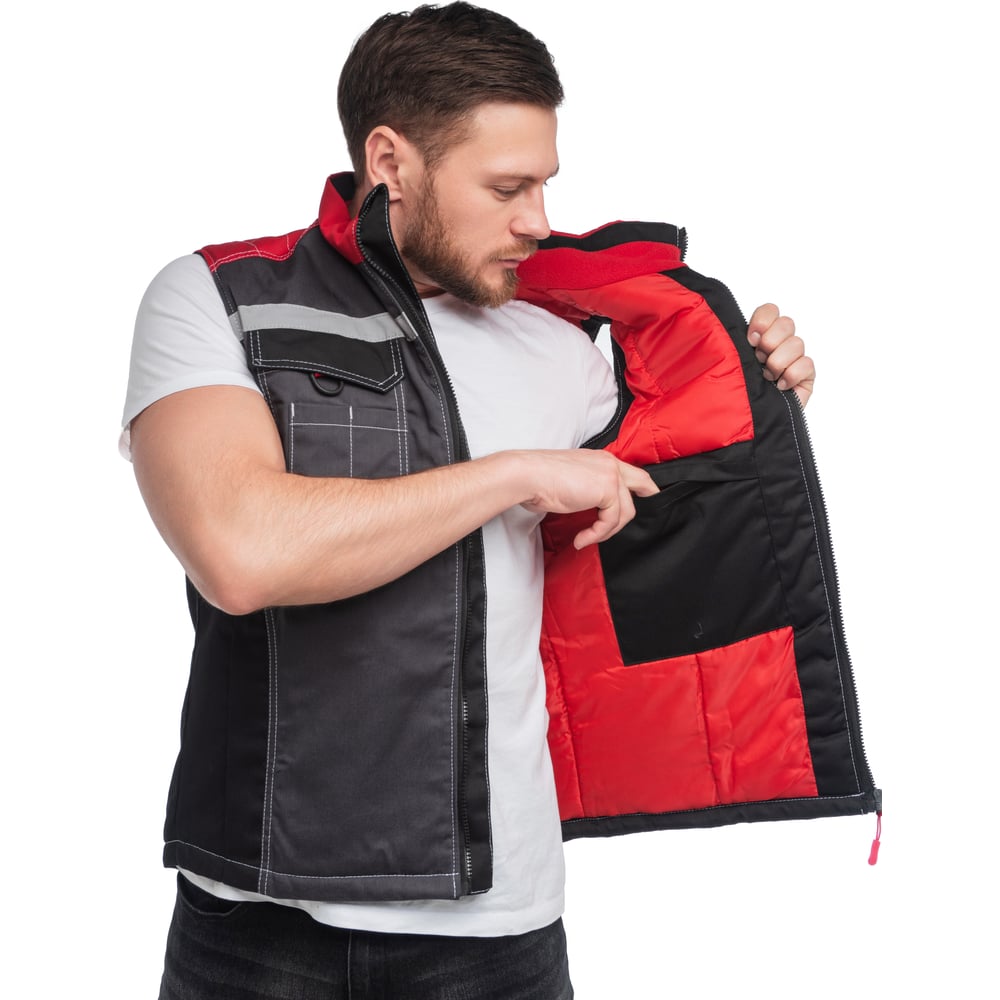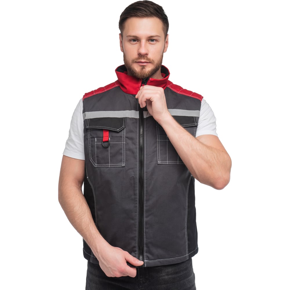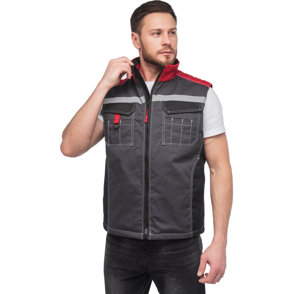 Утеплённый жилет с СОП Спрут ФОРМУЛА темно-серый с красной и черной отделкой, р. (56-58) 112-116 129402
