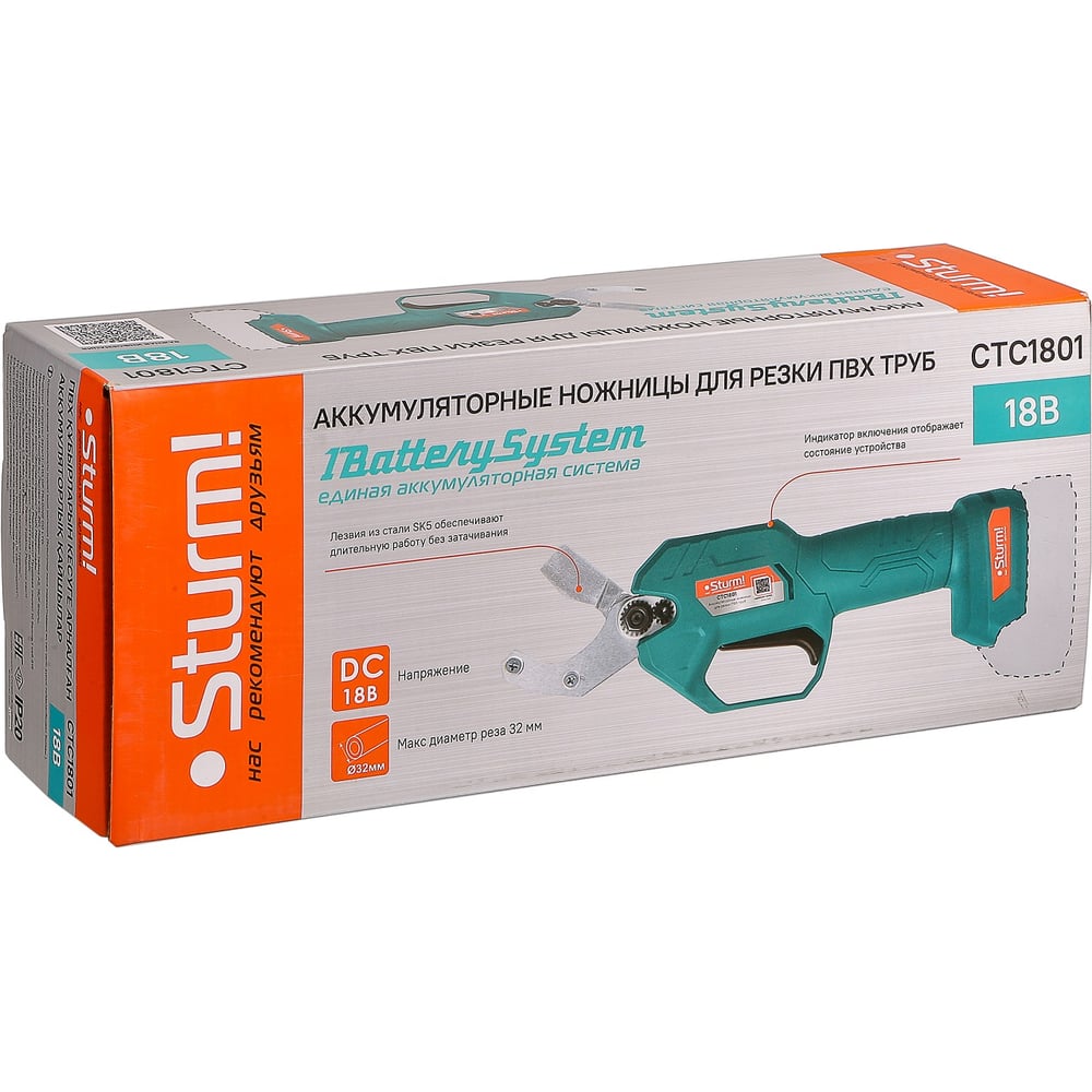 Аккумуляторные ножницы для резки ПВХ труб Sturm CTC1801