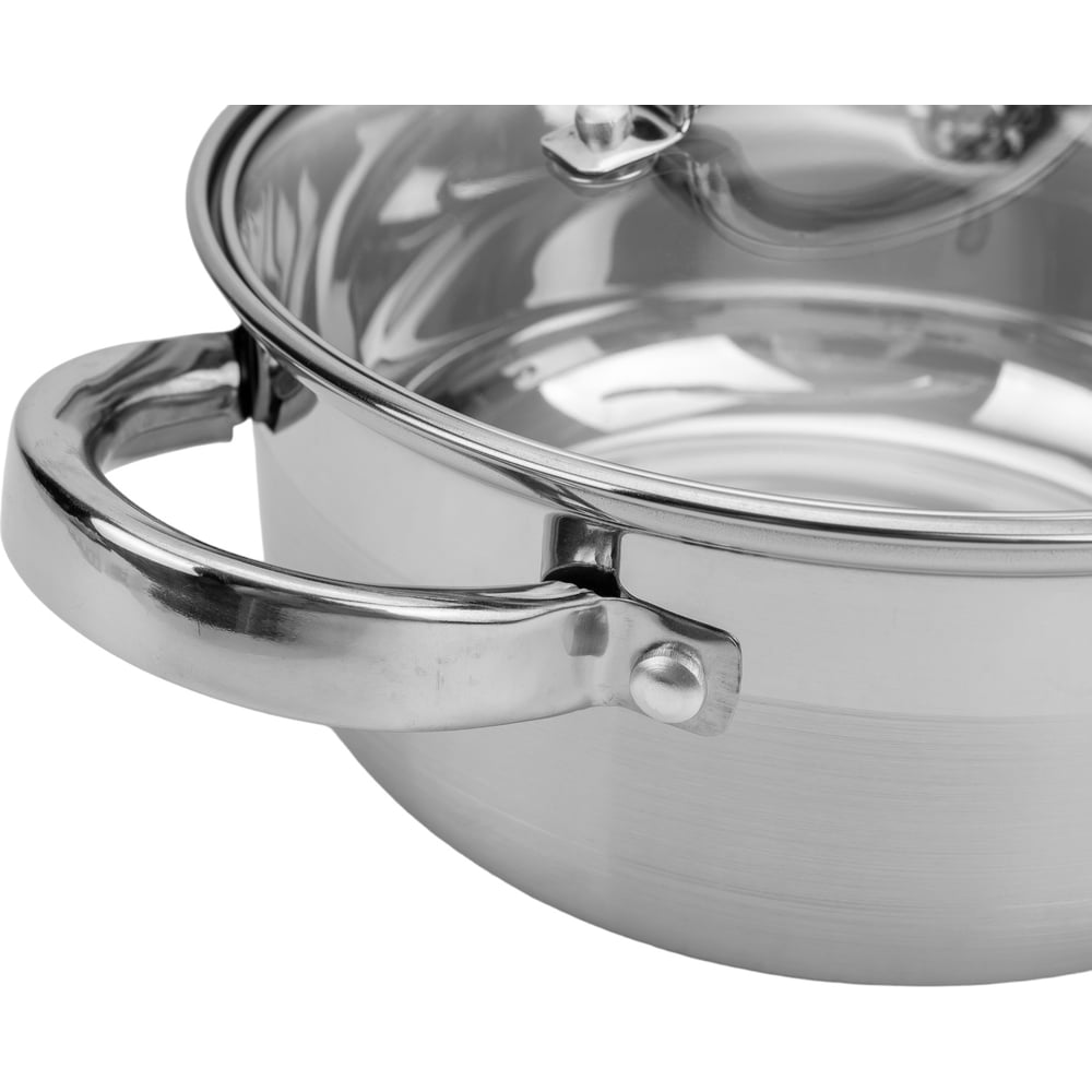 Габариты без упаковки 180x180x85 мм Высота 85 мм Материал нержавеющая сталь Объем 1.8 л Цвет серебристый Материал крышки нержавеющая сталь, стекло Крышка есть Для газовых плит да Мойка в посудомоечной машине да Толщина дна 0.6 мм Внешнее покрытие нержавеющая сталь Внутреннее покрытие нержавеющая сталь Диаметр дна 180 мм Толщина стенок 0.6 мм Выпускной клапан у крышки есть Для индукционных плит и шкафов да Для электрических конфорок да Мерная шкала да Материал ручек нержавеющая сталь Время сохранения тепла 1.5 ч
