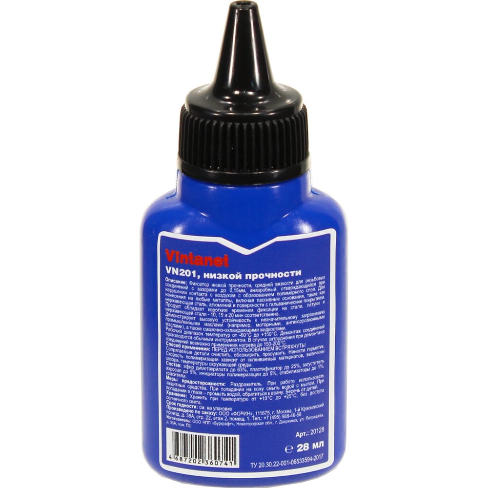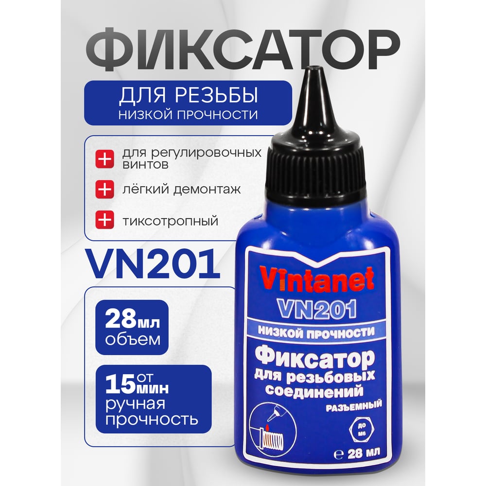Фиксатор для резьбовых соединений, низкопрочный, анаэробный VINTANET VN201, 28 мл VN20128ML