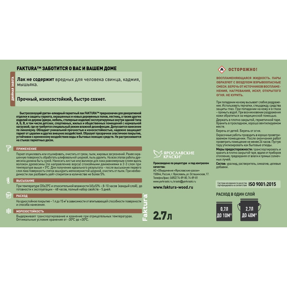 Паркетный лак FAKTURA полуматовый, ведро 2,7 л 208509