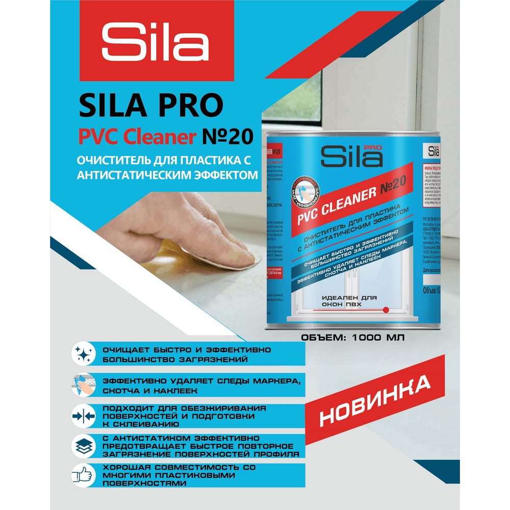 Очиститель для ПВХ пластика Sila PRO pvc cleaner №20, нерастворяющий, 1000 мл. SILA PRO №20_6