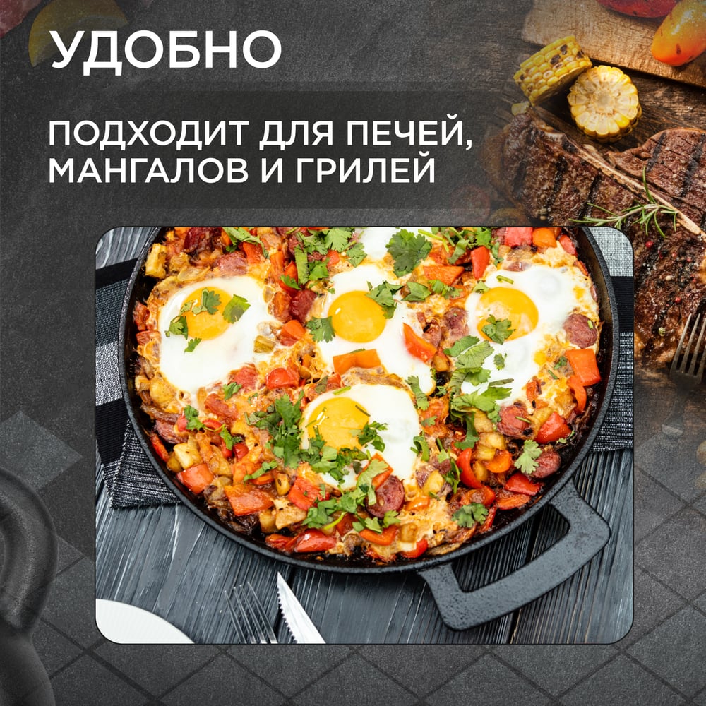 Чугунная сковорода для гриль-блюд и пиццы Forester 2 CI-09