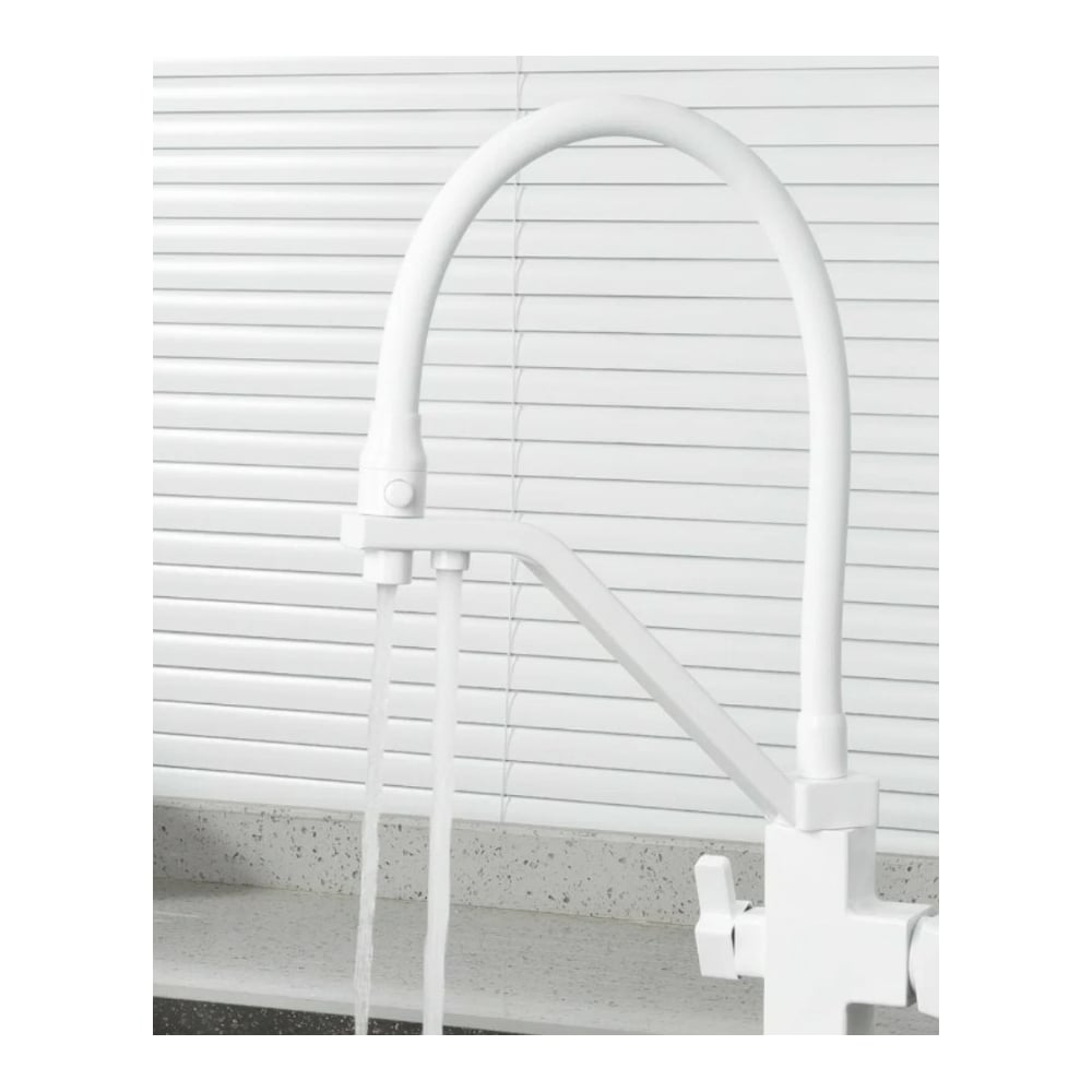 Смеситель для кухни Gappo 35k с выходом для питьевого фильтра, гибкий излив, белый-хром G4317-8 550573