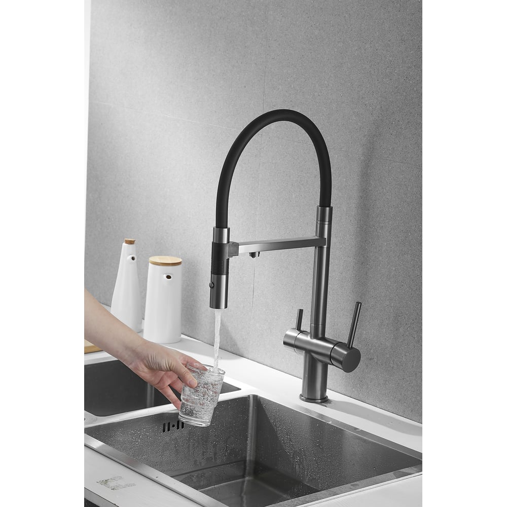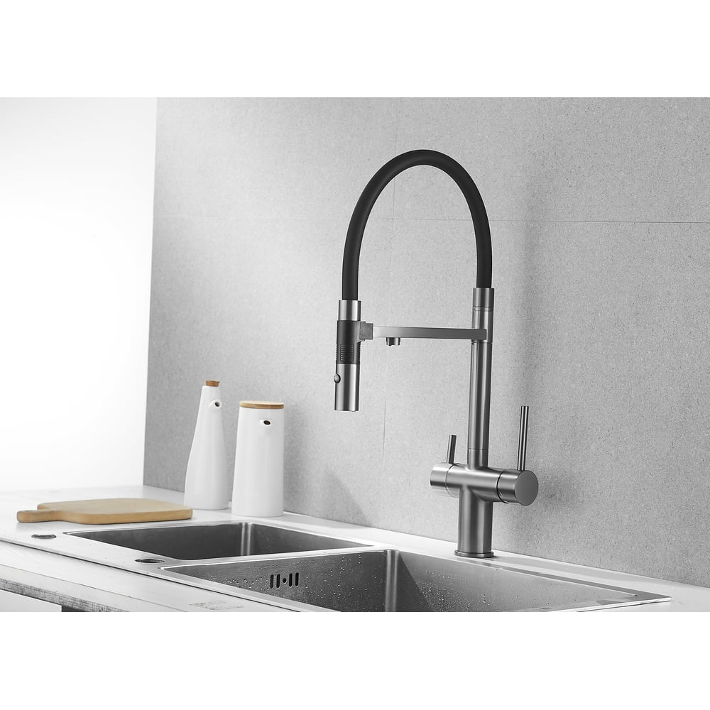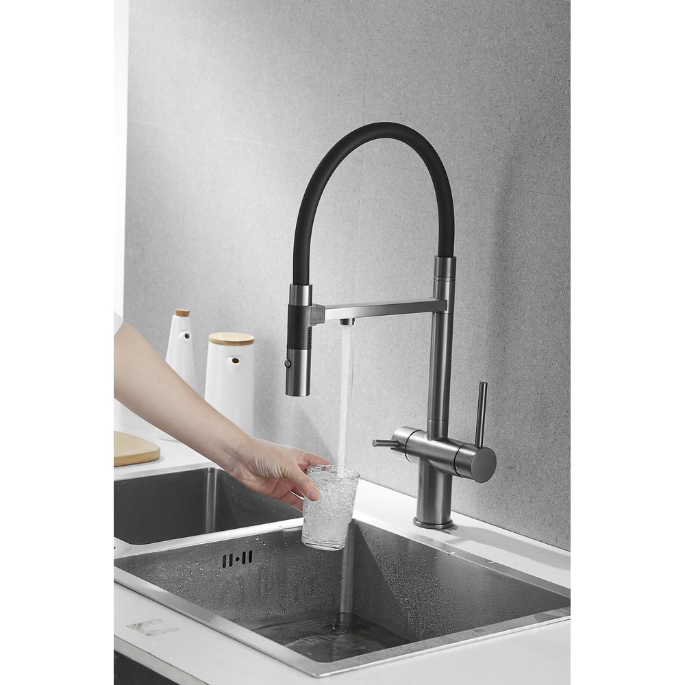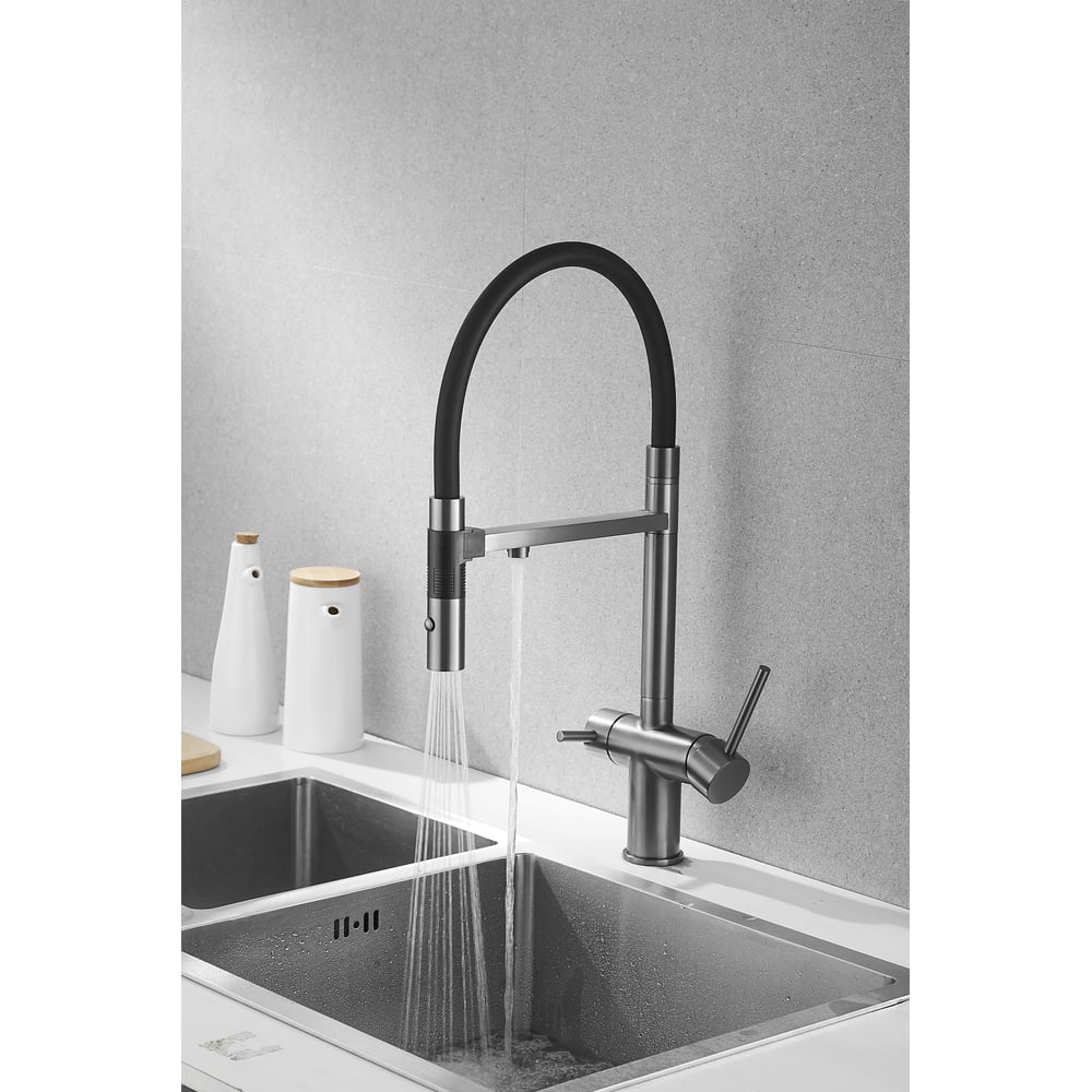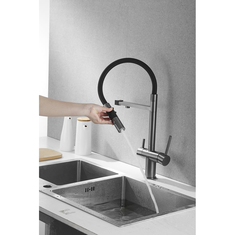 Смеситель для кухни ROSE с подключением к фильтру питьевой воды, оружейная сталь R958T