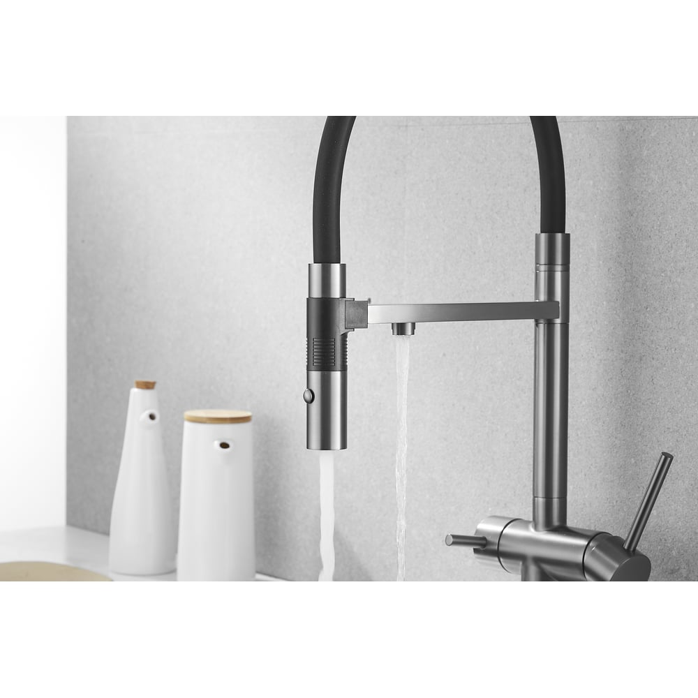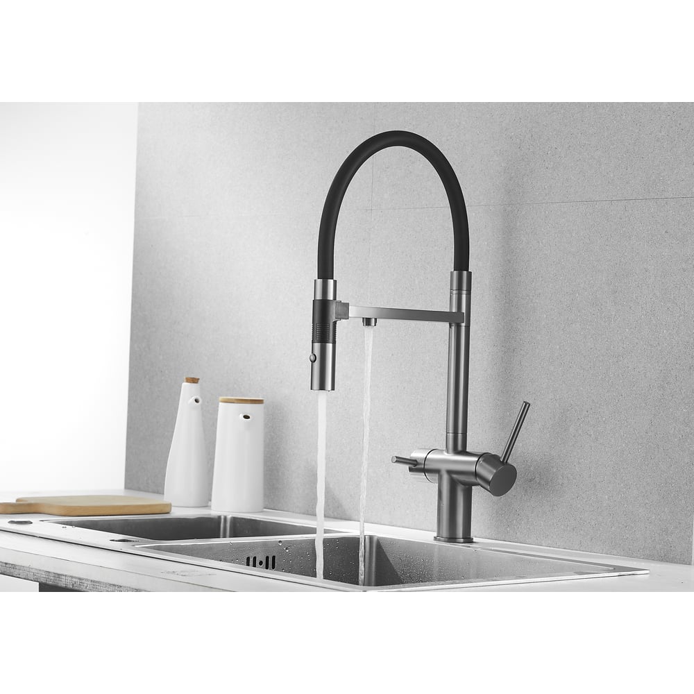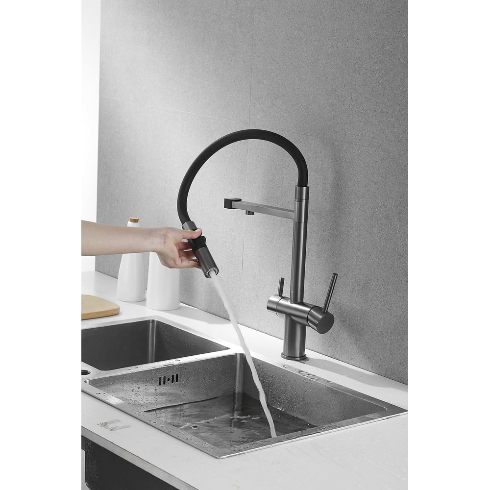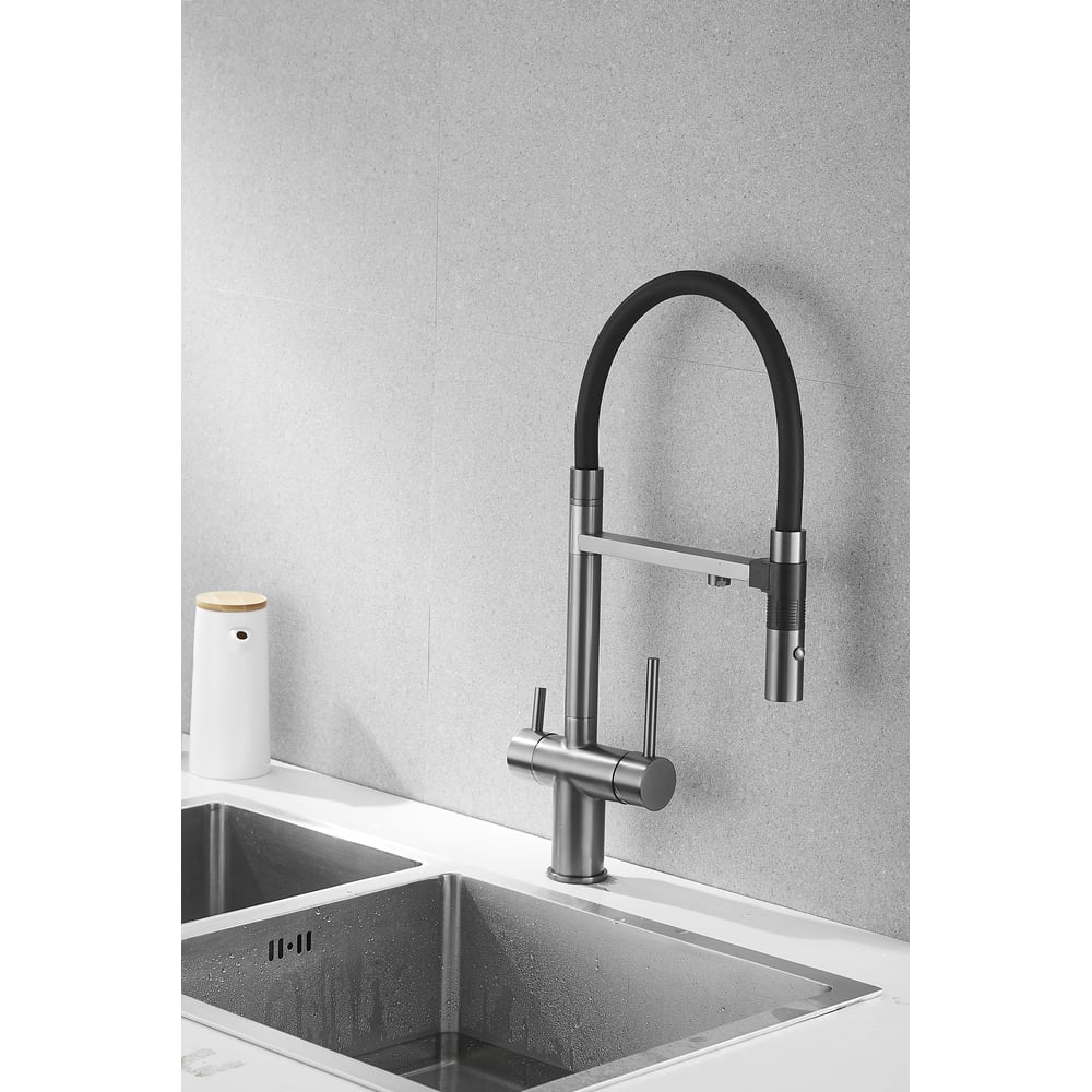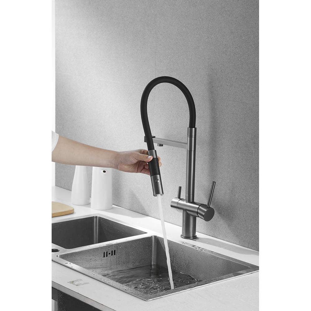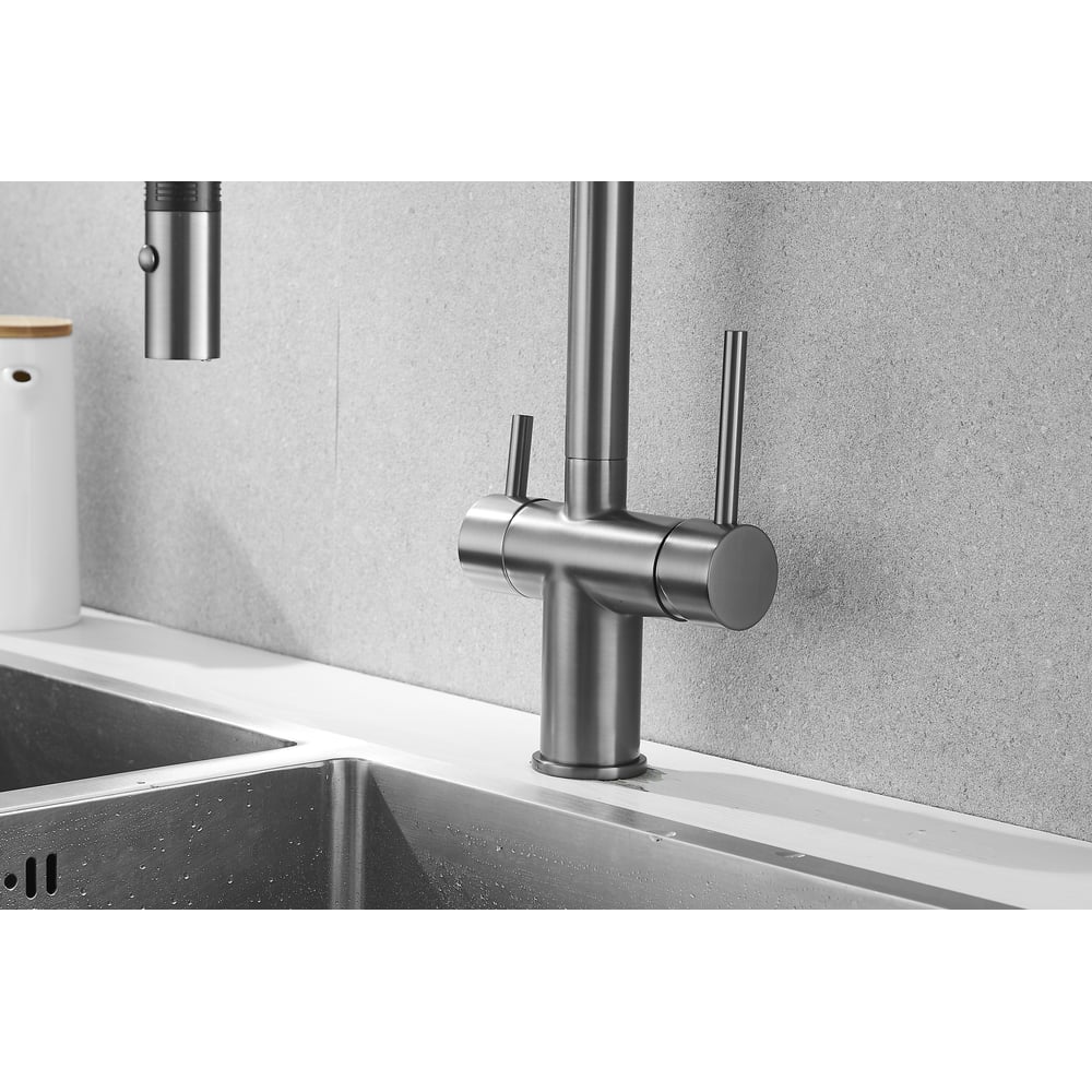 Смеситель для кухни ROSE с подключением к фильтру питьевой воды, оружейная сталь R958T