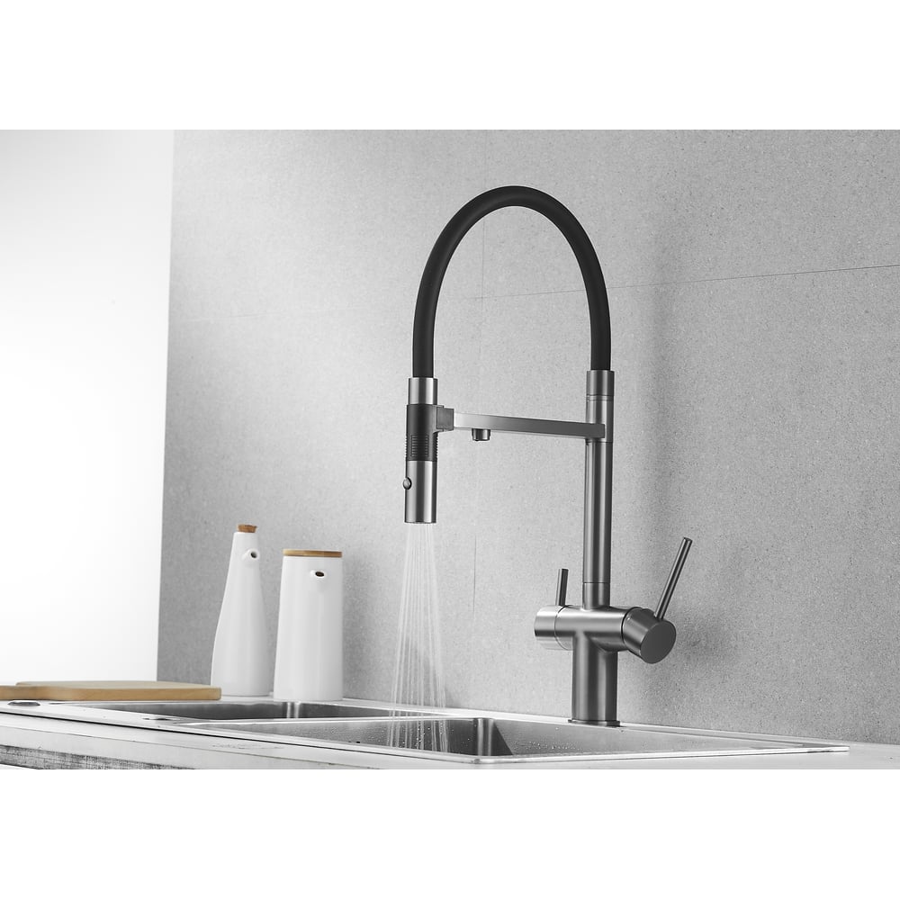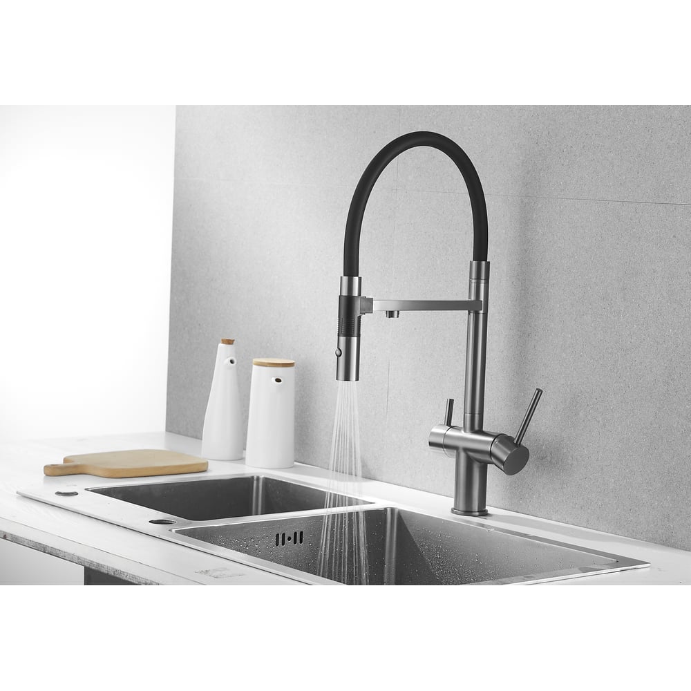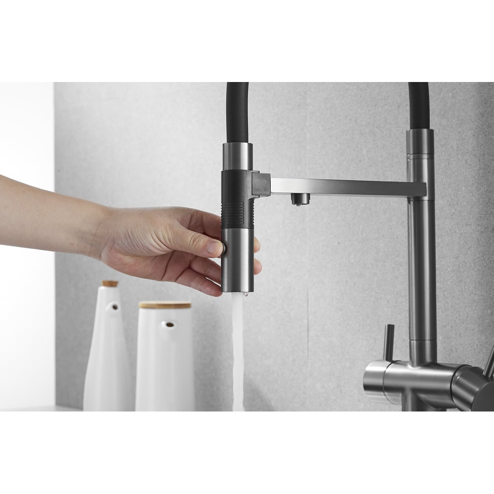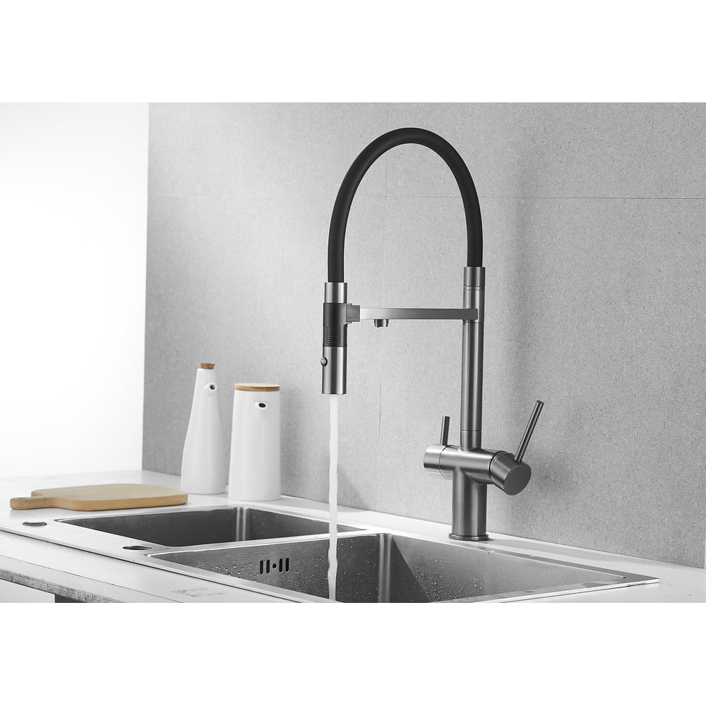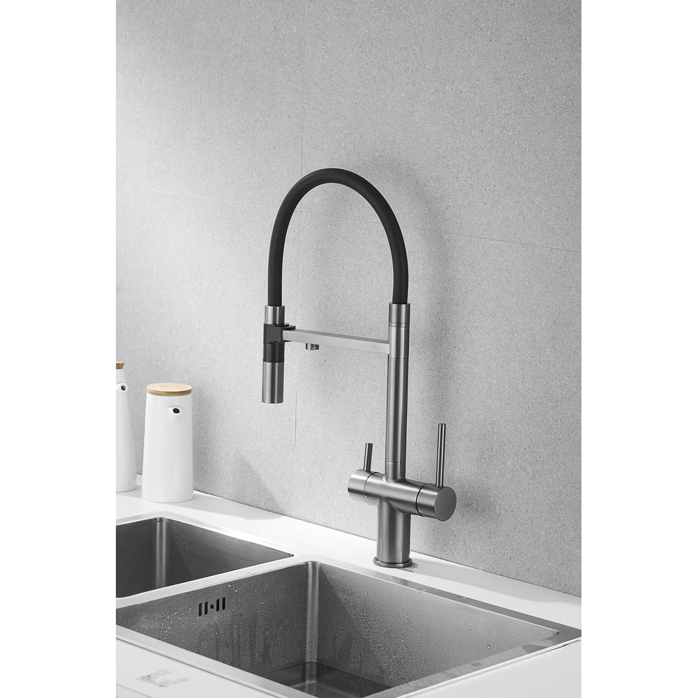 Смеситель для кухни ROSE с подключением к фильтру питьевой воды, оружейная сталь R958T