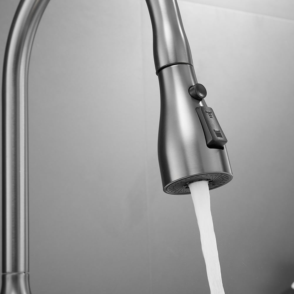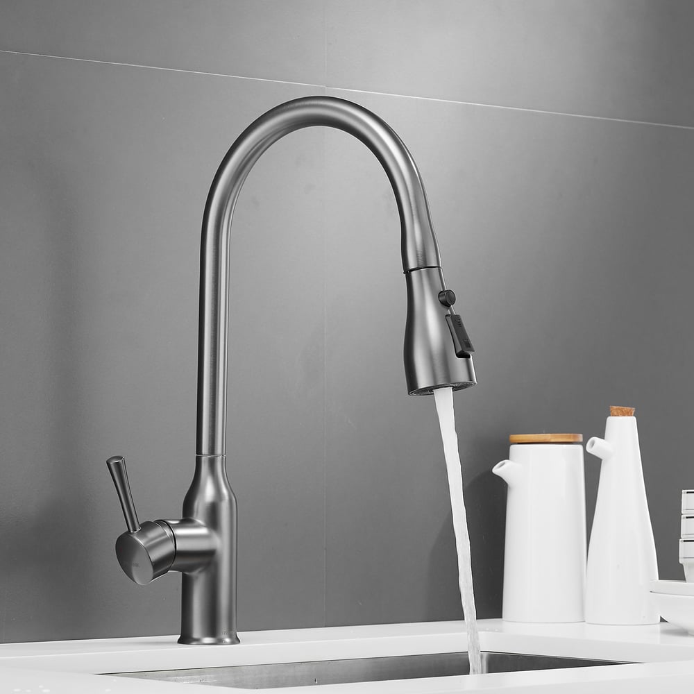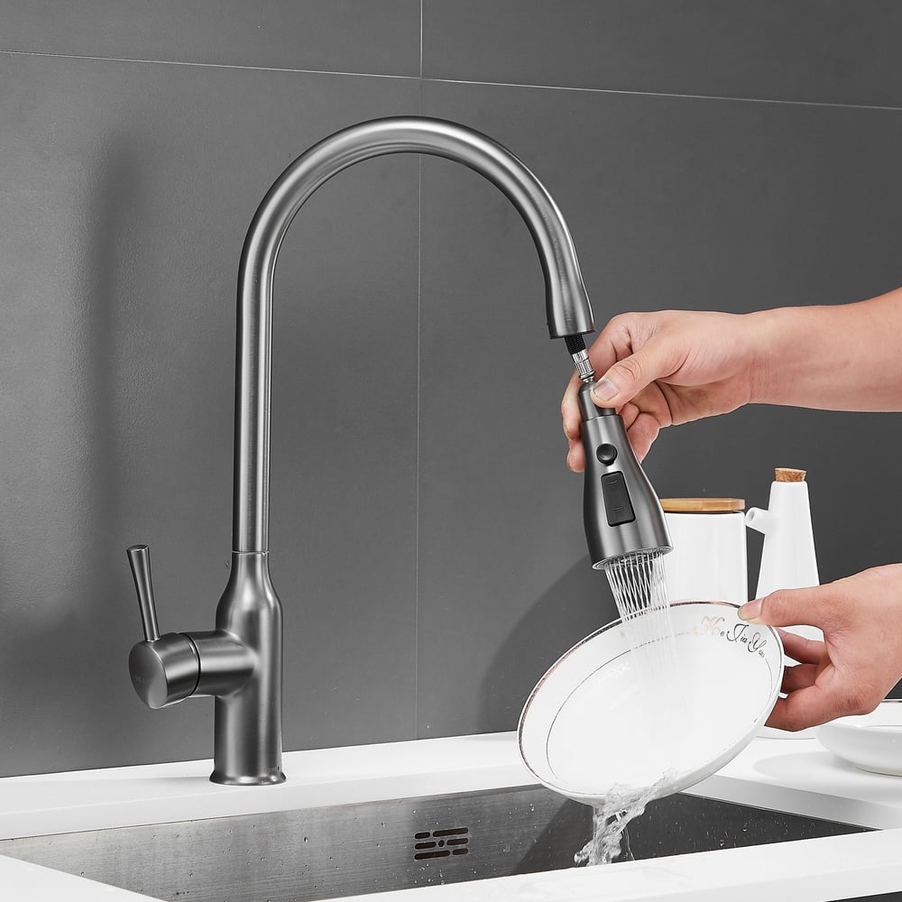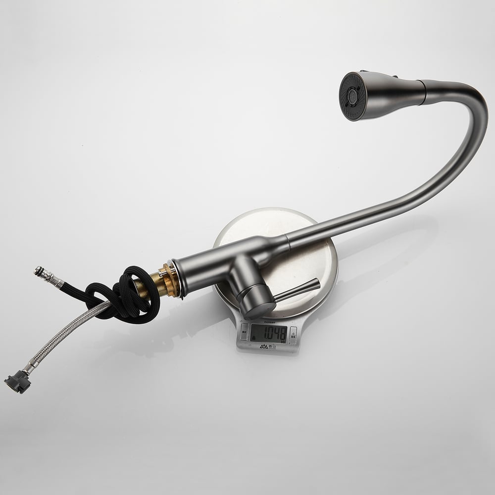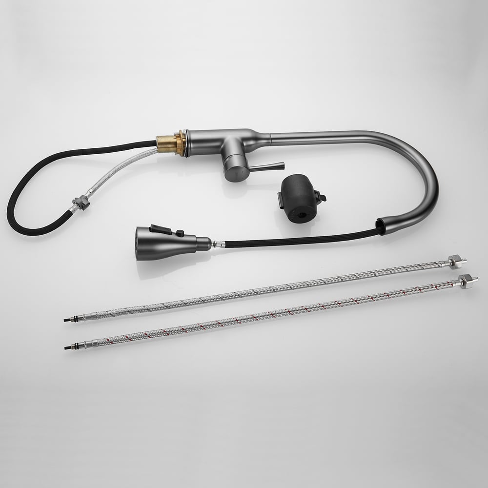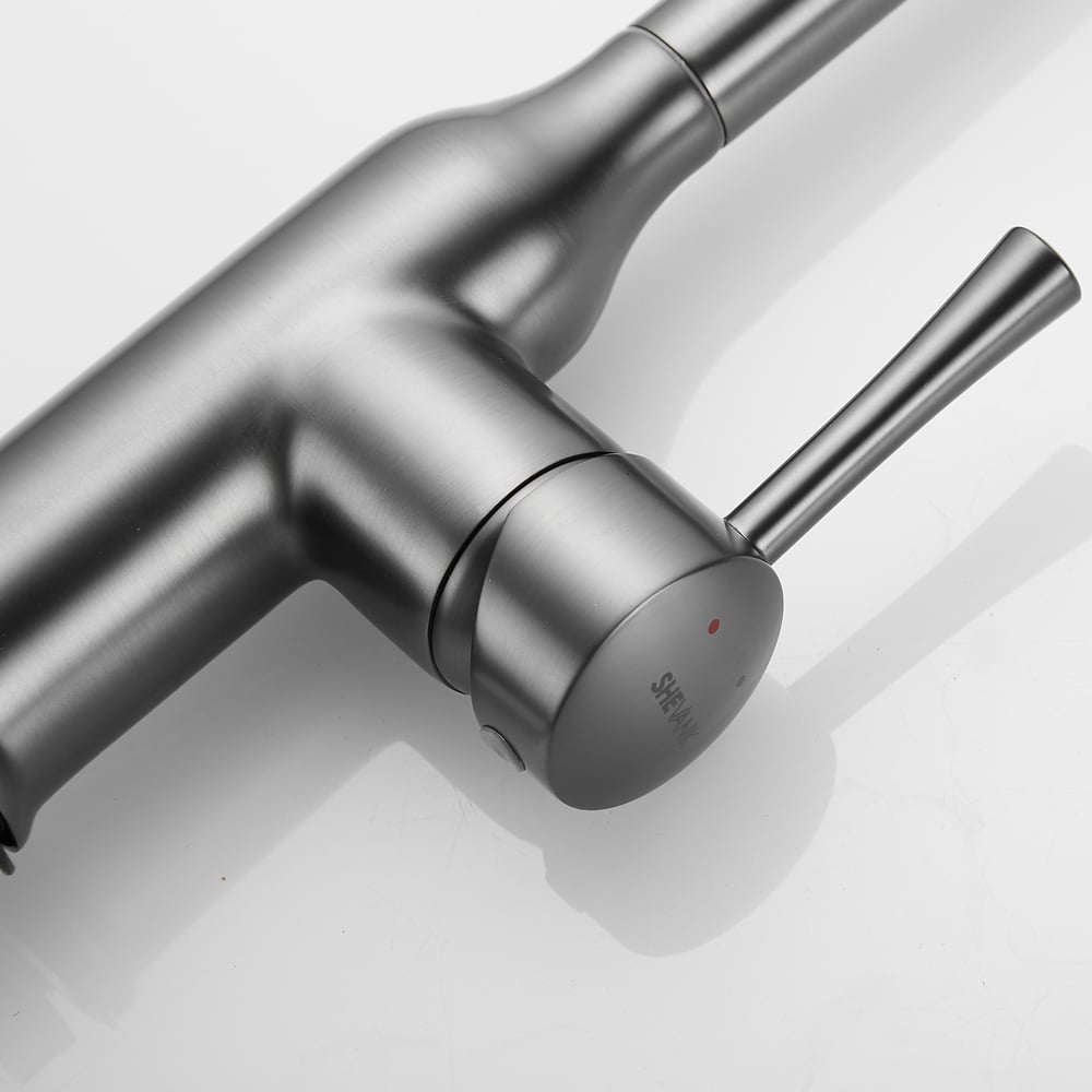 Смеситель для кухни SHEVANIK с выдвижной лейкой душем черный оружейная сталь S163T