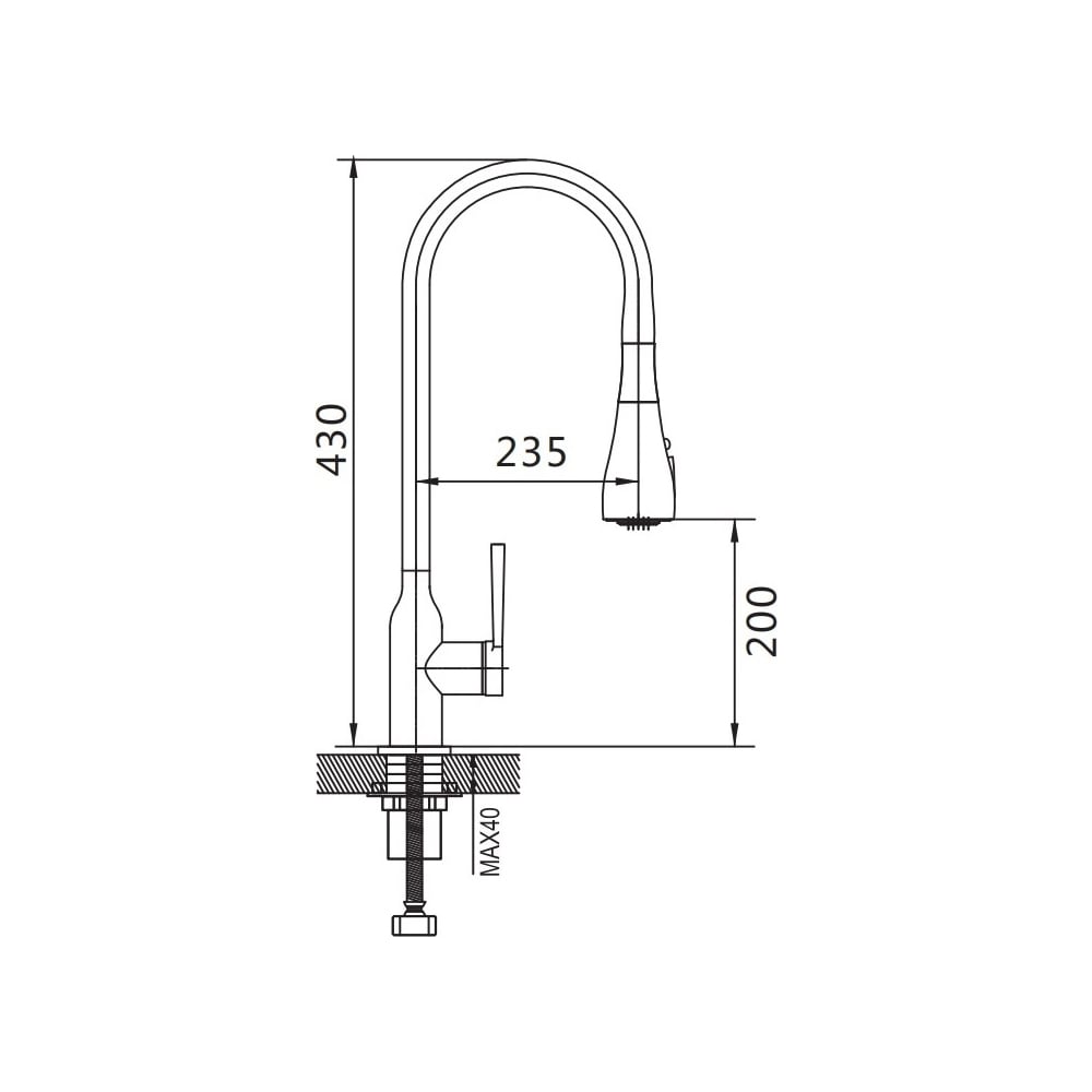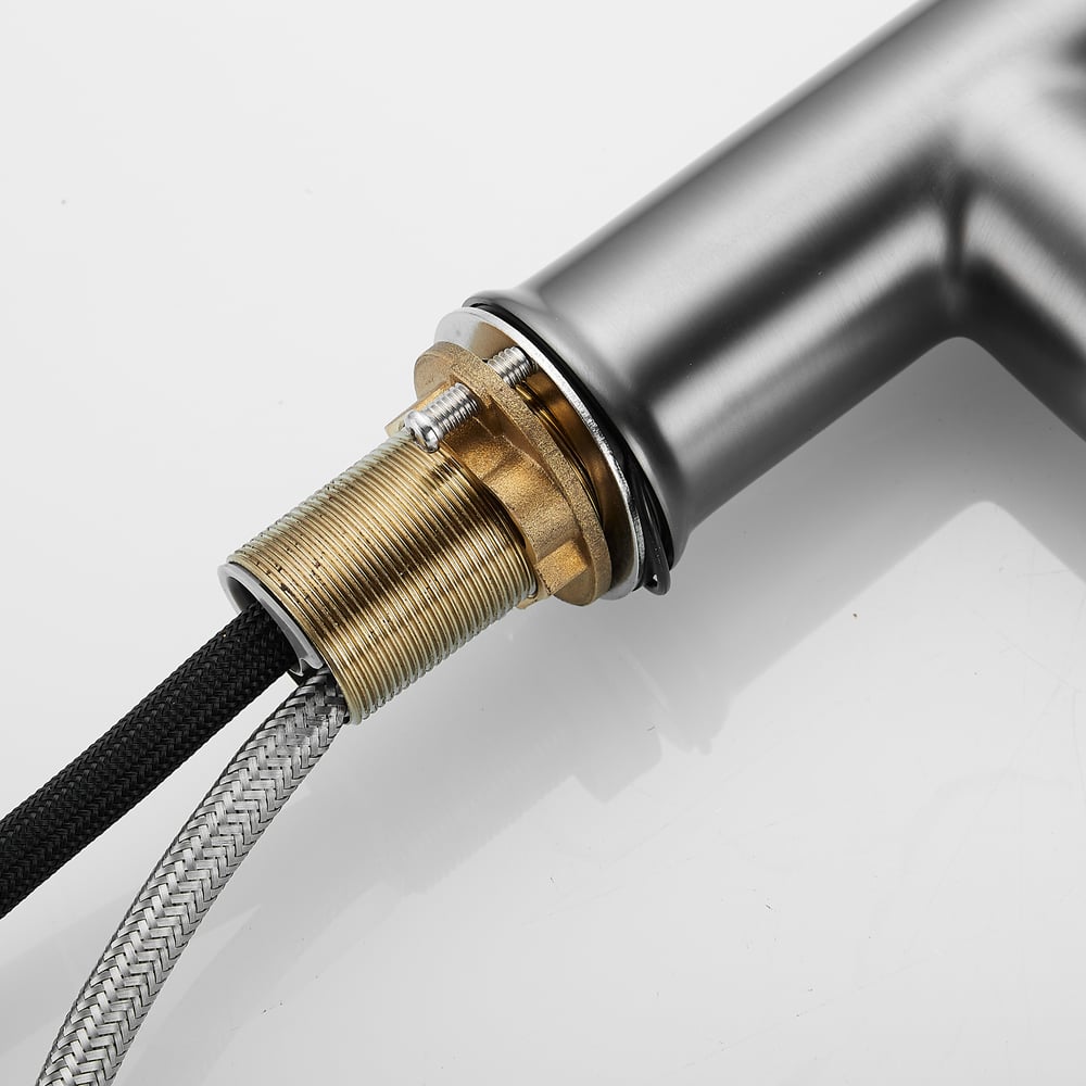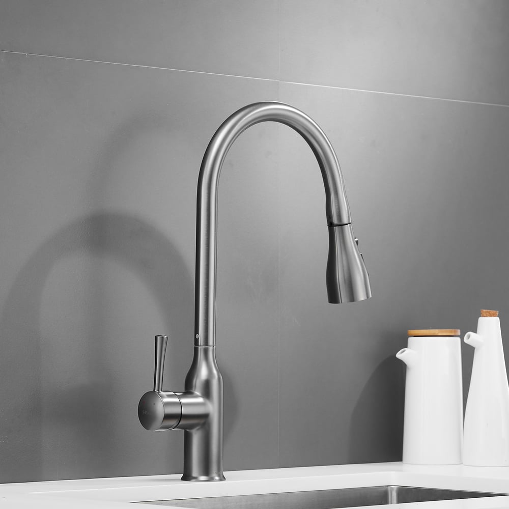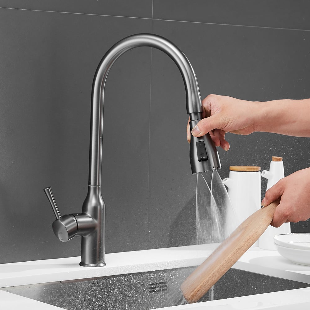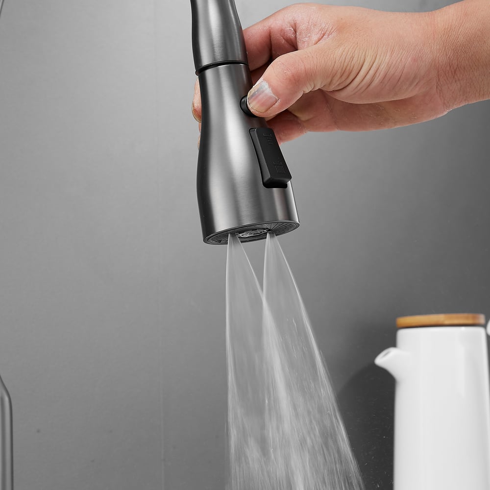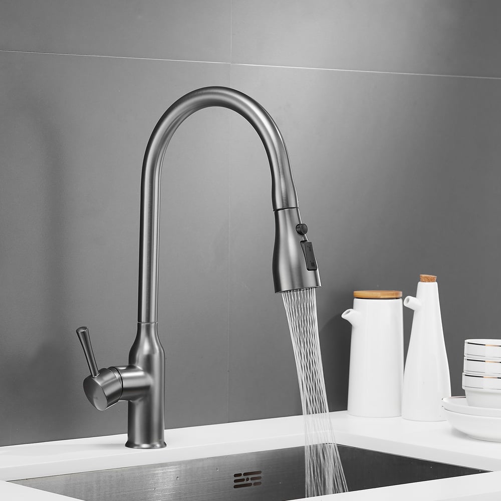 Смеситель для кухни SHEVANIK с выдвижной лейкой душем черный оружейная сталь S163T